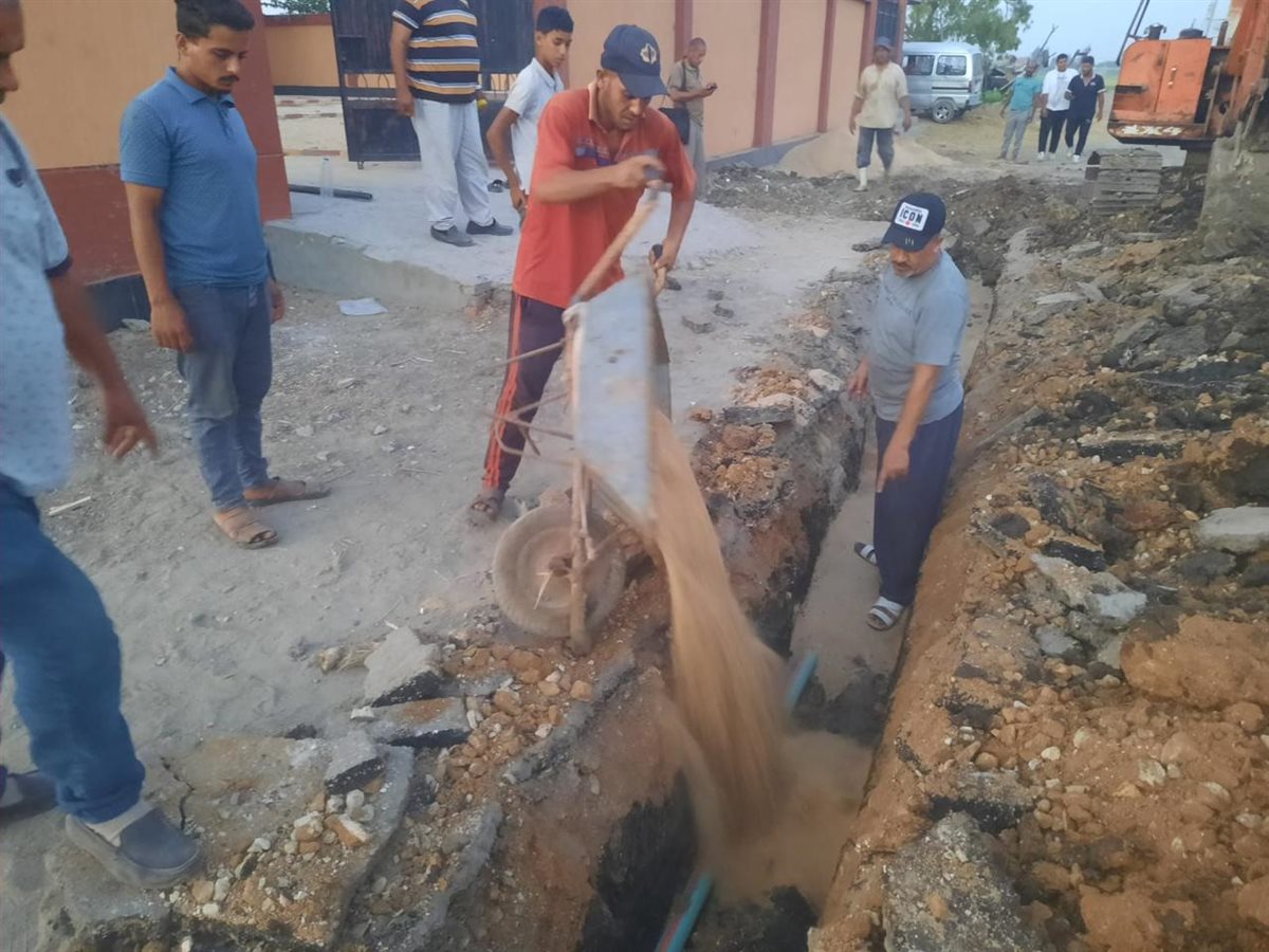 توصيل خط مياه شرب جديد للرياض وتطهير مصرف نشرت بقلين في كفر الشيخ (صور)