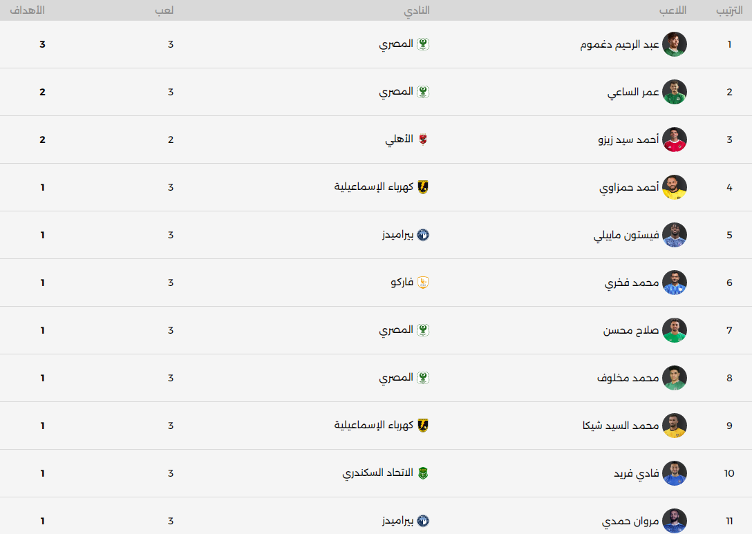 ويطارد أحمد سيد زيزو لاعب الأهلي، وعمر الساعي لاعب المصري ولكل منهما هدفين، دغموم عل صدارة جدول هدافي الدوري المصري.