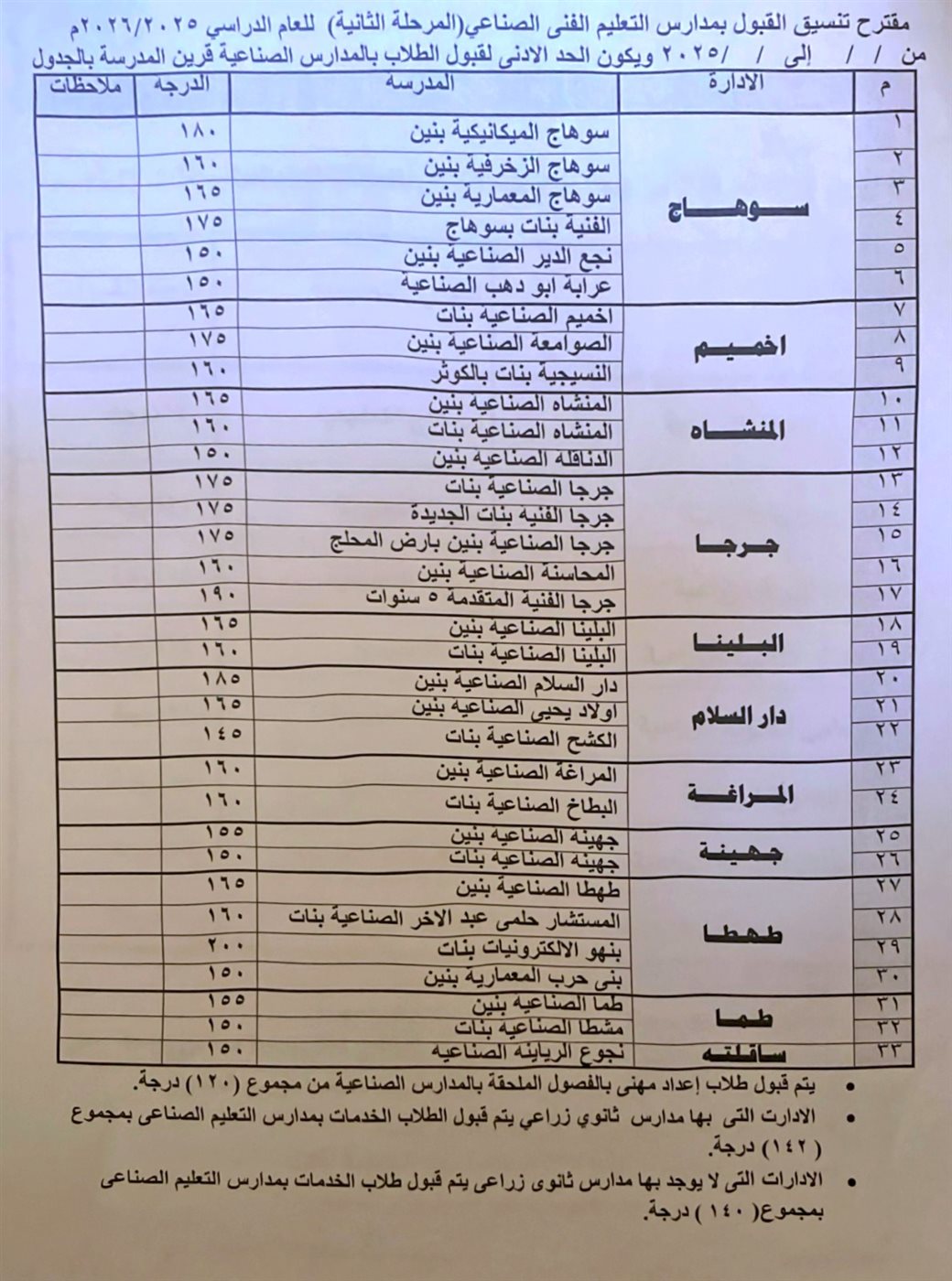 اعتمد اللواء دكتور عبد الفتاح سراج محافظ سوهاج، اليوم، المرحلة الثانية لتنسيق القبول بمدارس التعليم الفني للعام الدراسي 2025/ 2026.