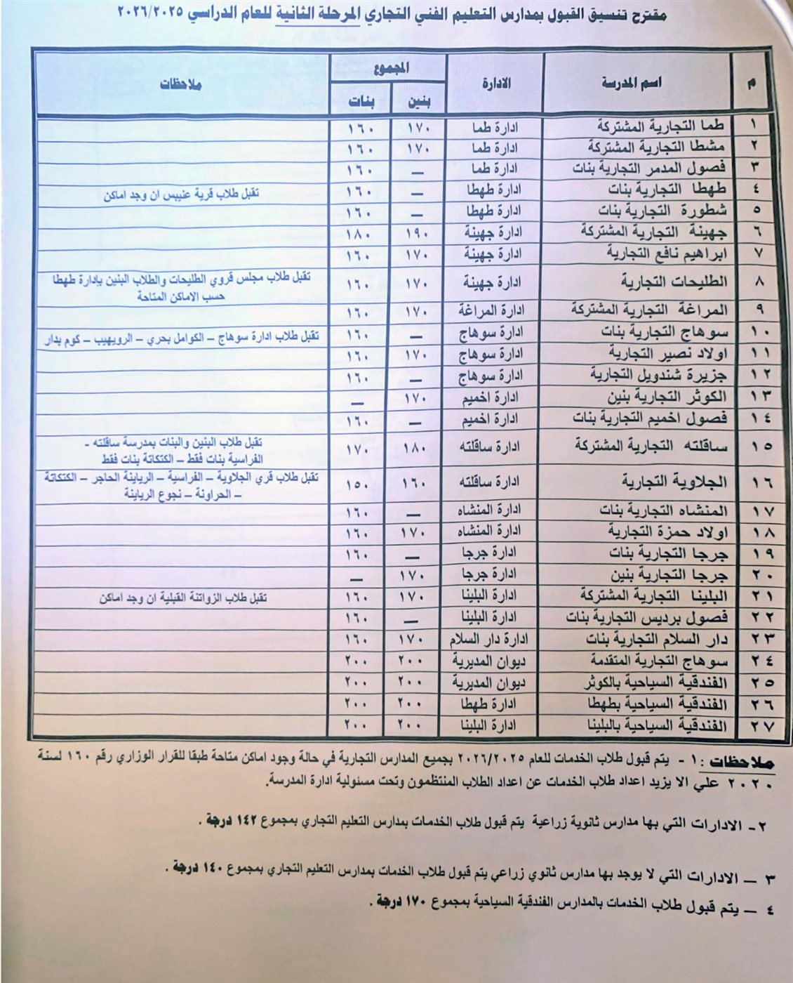 محافظ سوهاج يعتمد المرحلة الثانية لتنسيق القبول بمدارس التعليم الفني للعام الدراسي