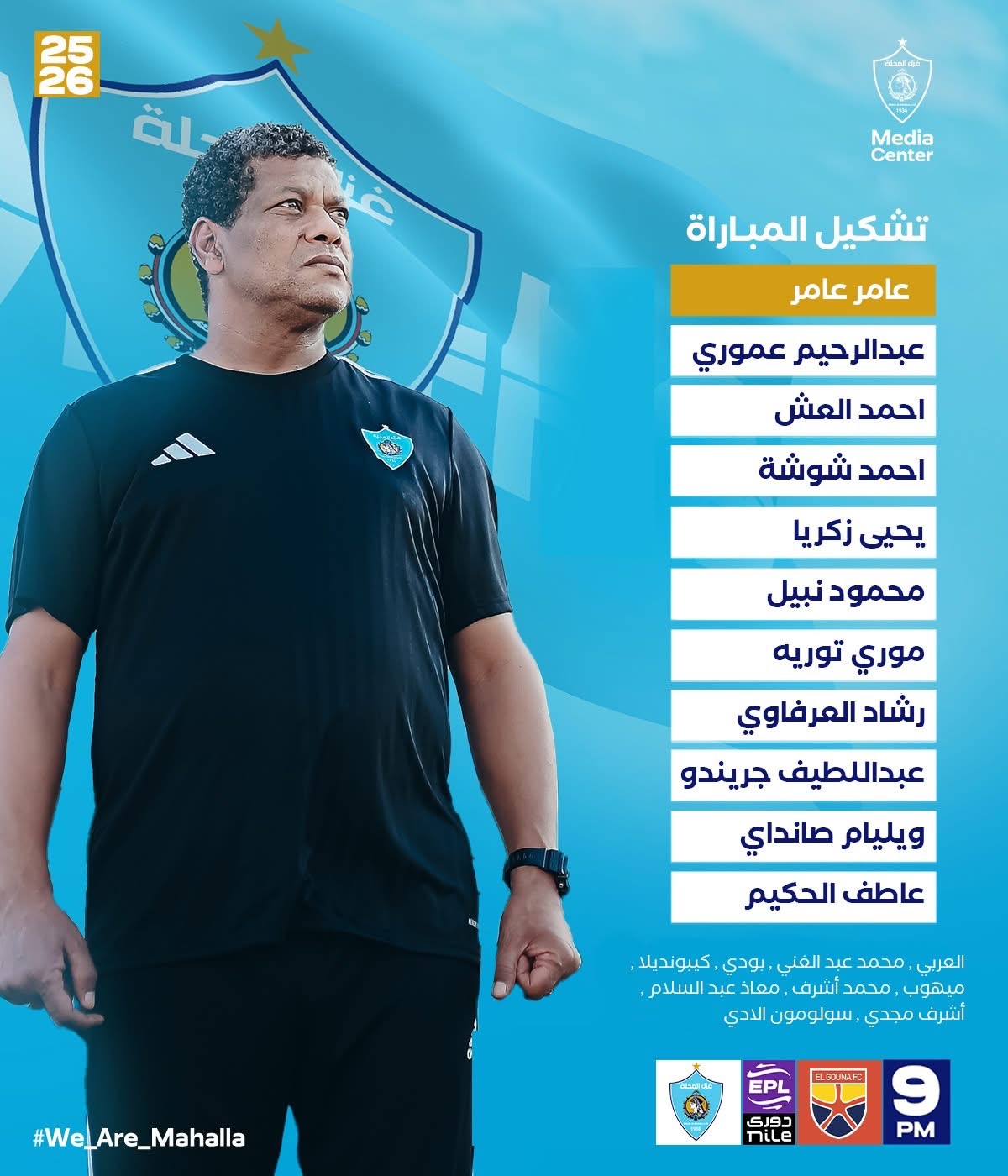 حراسة المرمى: محمد علاء.
