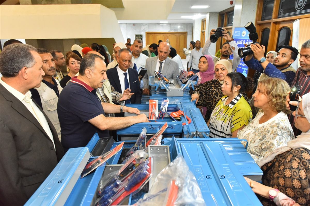 الأيدي الناعمة تخترق مجالا جديدا من مهن الرجال، محافظ أسيوط يسلم خريجات صنايع أدوات سباكة (صور)