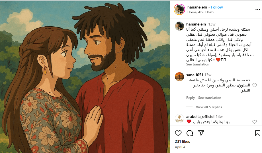القصة بدأت في يوليو 2024 حيث نشرت حنان المغربية صورة على “إنستجرام” تمسك فيها بيد رجل أخفت ملامحه برمز تعبيري.