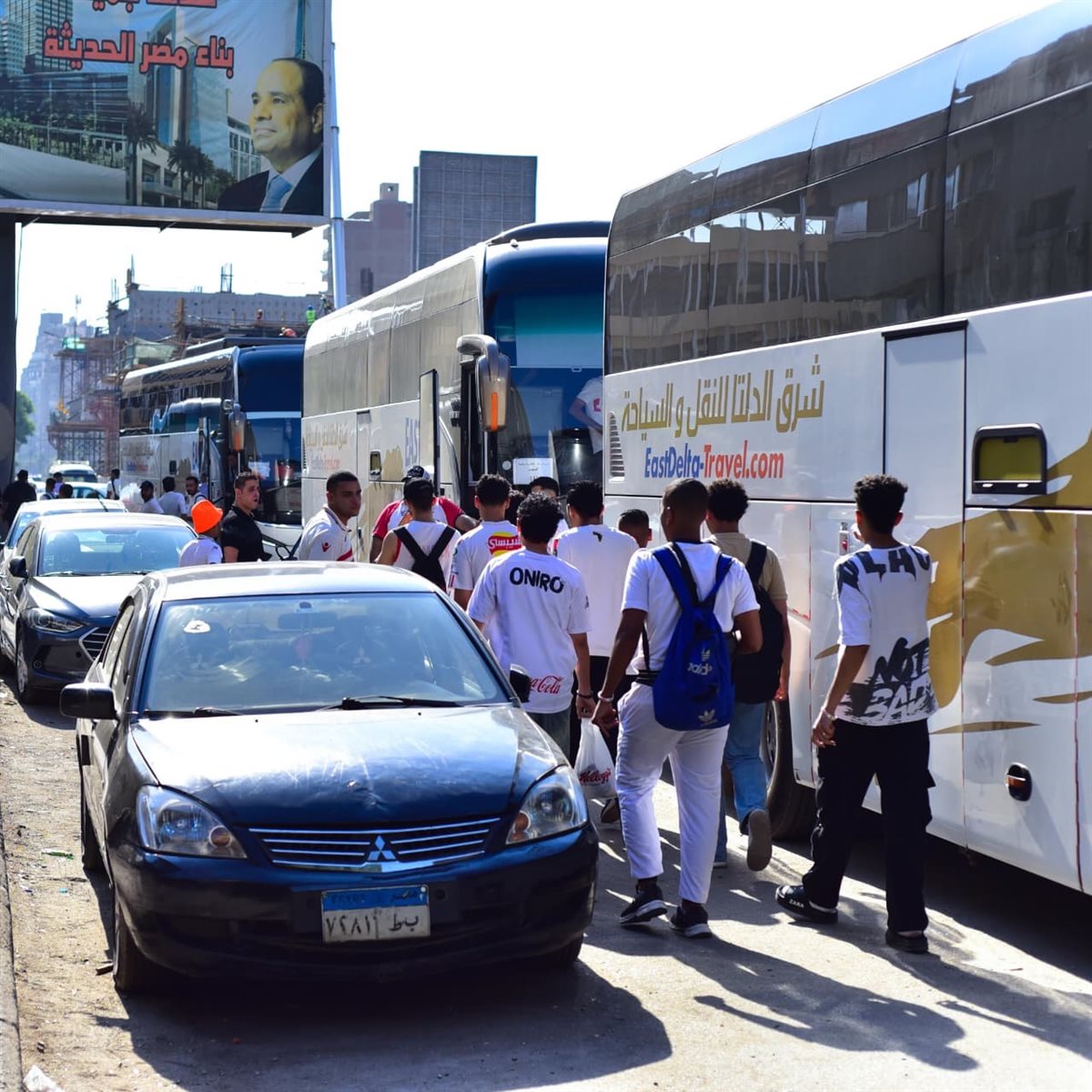 حافلات جماهير الزمالك تستعد للتوجه إلى الإسماعيلية لحضور موقعة مودرن سبورت (صور)
