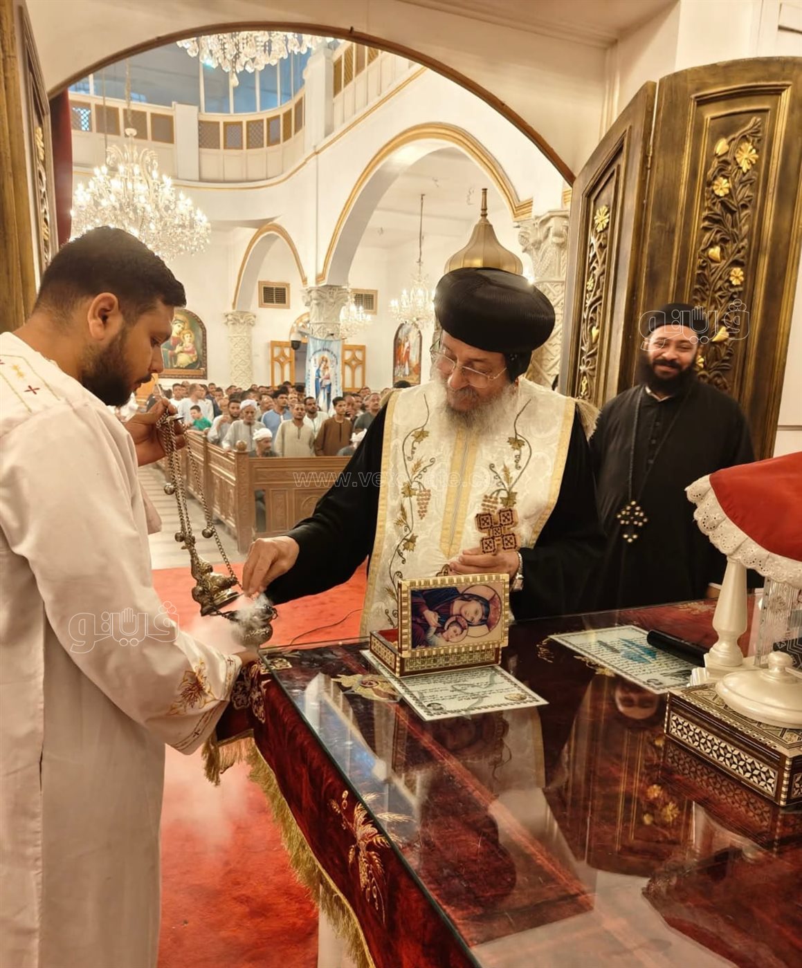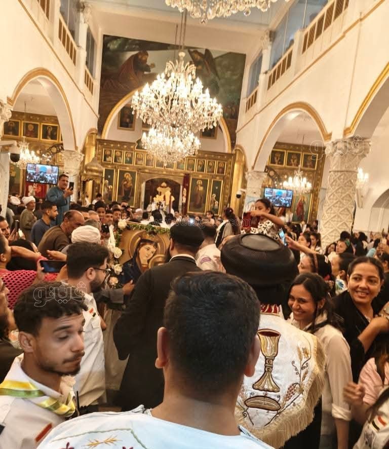 وشهد الاحتفال طواف الشمامسة أرجاء الكنيسة، حاملين الشموع والصلبان التي تعلوها صور العذراء مريم، ومن خلفهم الأب الأسقف والآباء الكهنة حاملين أيقونة السيدة العذراء، وسط أصوات التراتيل والتماجيد المطوبة للعذراء مريم، وسط فرحة من شعب الكنيسة الذي تهافت لأخذ البركة من أيقونة العذراء.