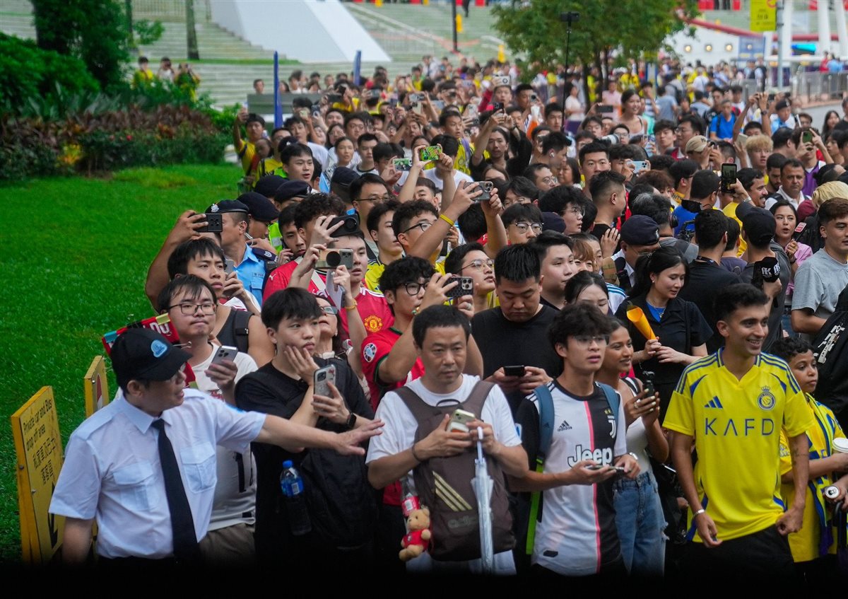 كأس السوبر السعودي، تجمعت أعداد كبيرة من الجماهير ومحبي نادي النصر لمؤازرة الفريق أمام استاد هونج كونج؛ استعدادا لمواجهة أهلي جدة بنهائي كأس السوبر السعودي 2025.