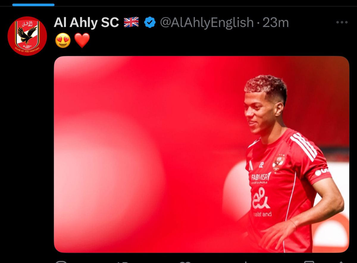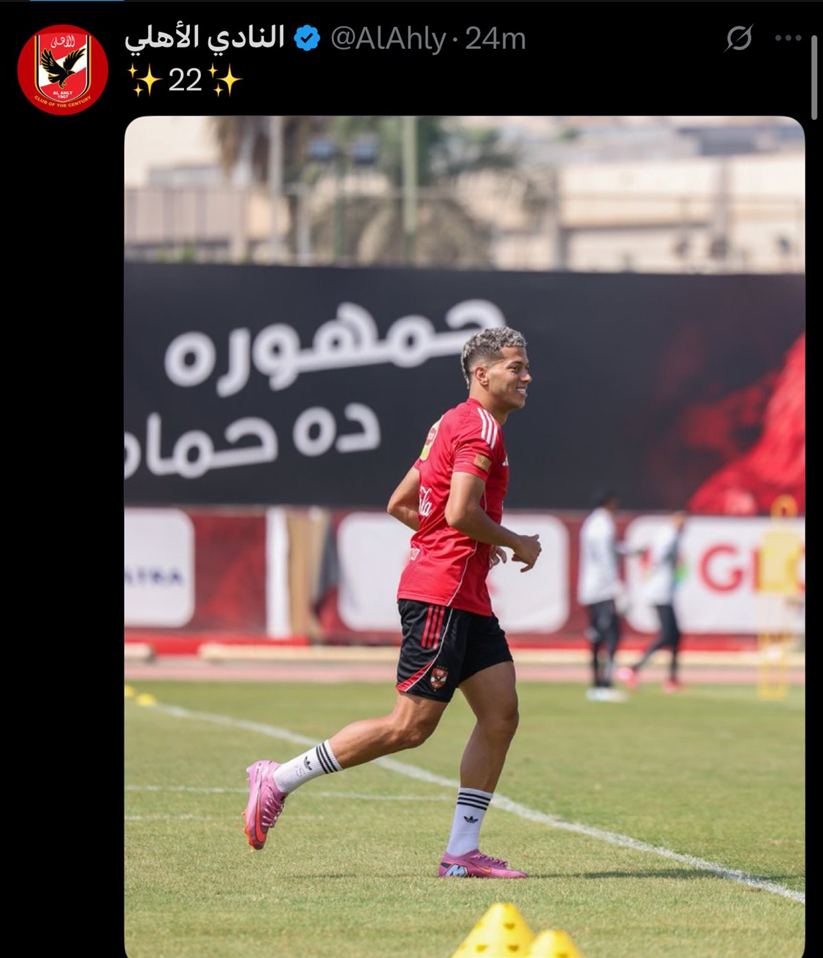 ونشر حساب الأهلي علي إكس صورة لإمام عاشور، وعلق عليها برقم 22، وهو الرقم الذي يرتديه اللاعب مع الفريق بجانب بعض الرموز التعبيرية.