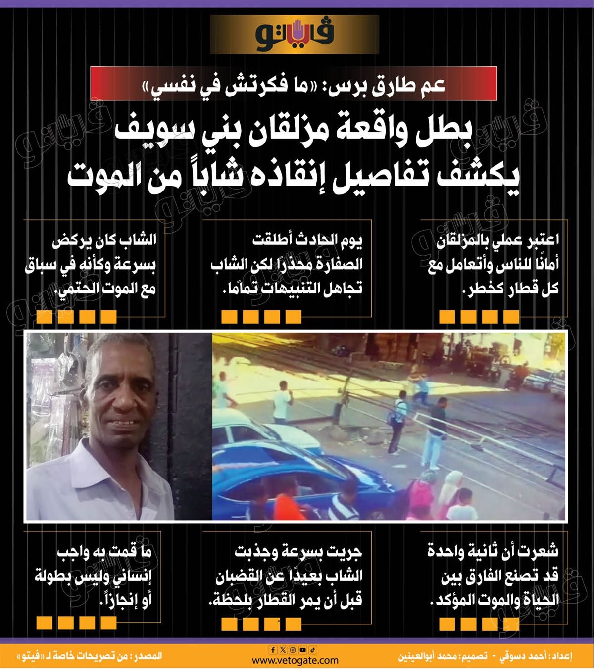 عم طارق برس: «ما فكرتش في نفسي».. بطل واقعة مزلقان بني سويف يكشف تفاصيل إنقاذه شابًا من الموت