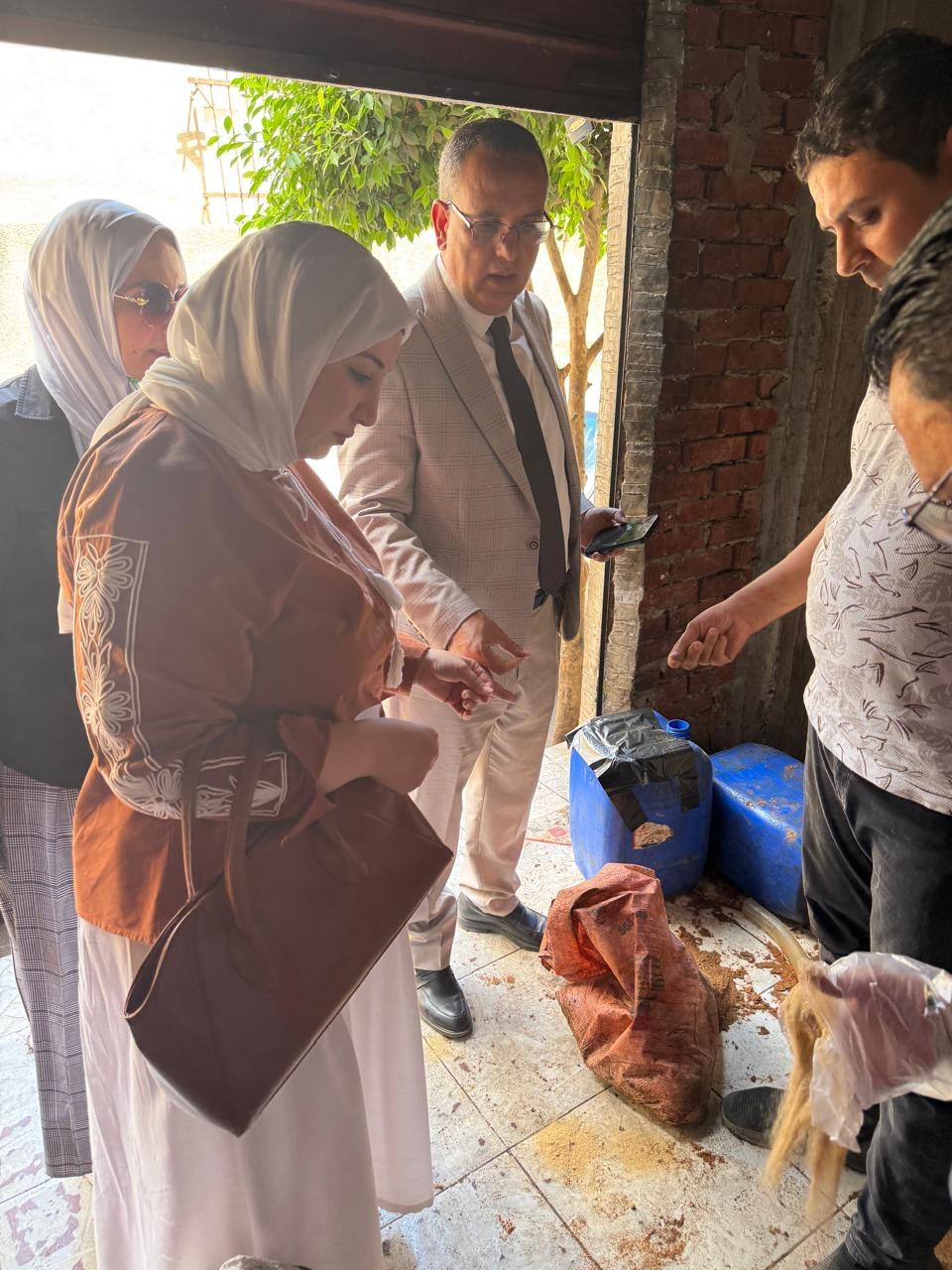 المضبوطات: ضبط 10 كجم لحم بلدي ذبح خارج السلخانة، 15 كجم حمام مجمد بدون بيانات، و110 كجم لحوم ودواجن غش تجاري، 6 قاروصة سجائر مجهول المصدر.