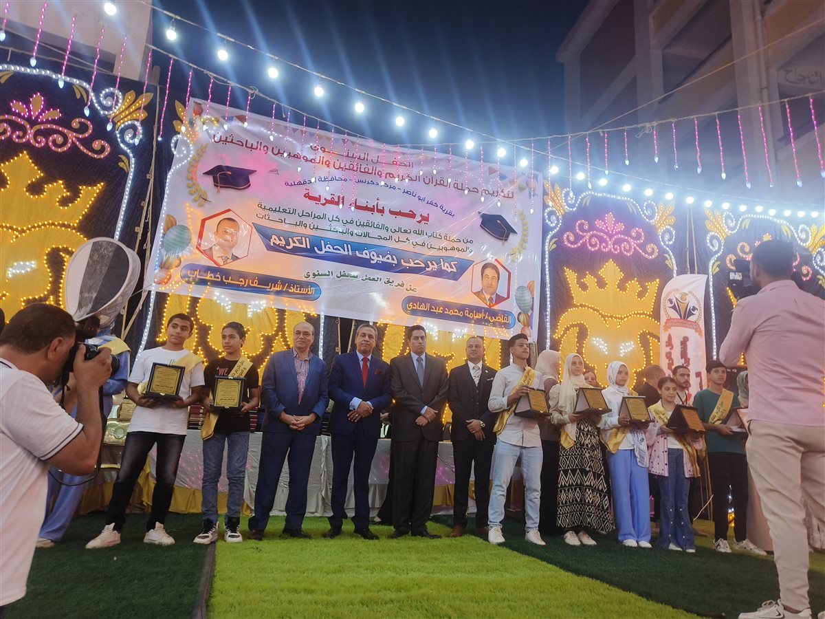وشمل الحفل تكريم لأبناء القرية، من المتفوقين دراسيا بمختلف المراحل التعليمية، إضافة لأبناء القرية من النوابغ، وايضا أبناء القرية من البالغين سن المعاش في مختلف الوظائف، لتظهر القرية في شكل مبهج وحفل شامل يسعد الجميع من أبناء القرية.