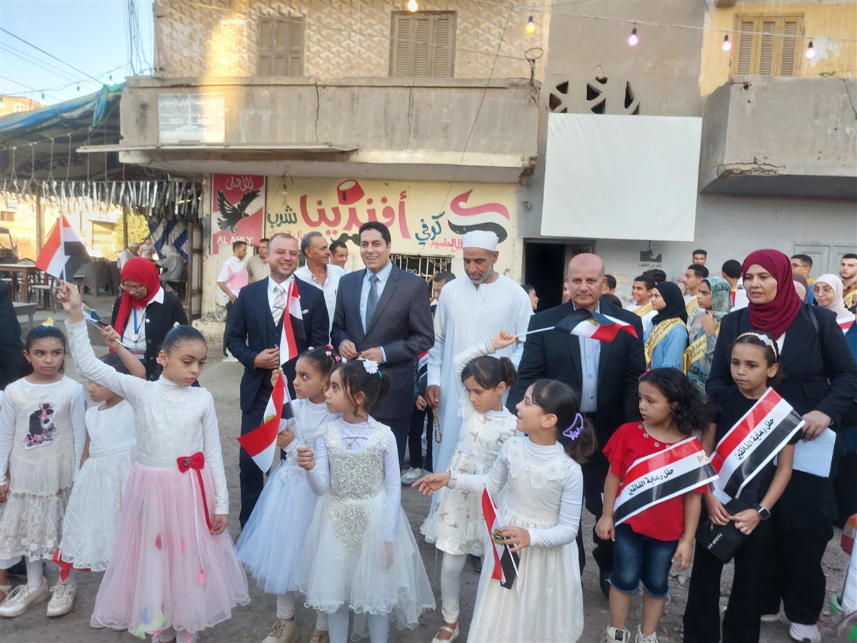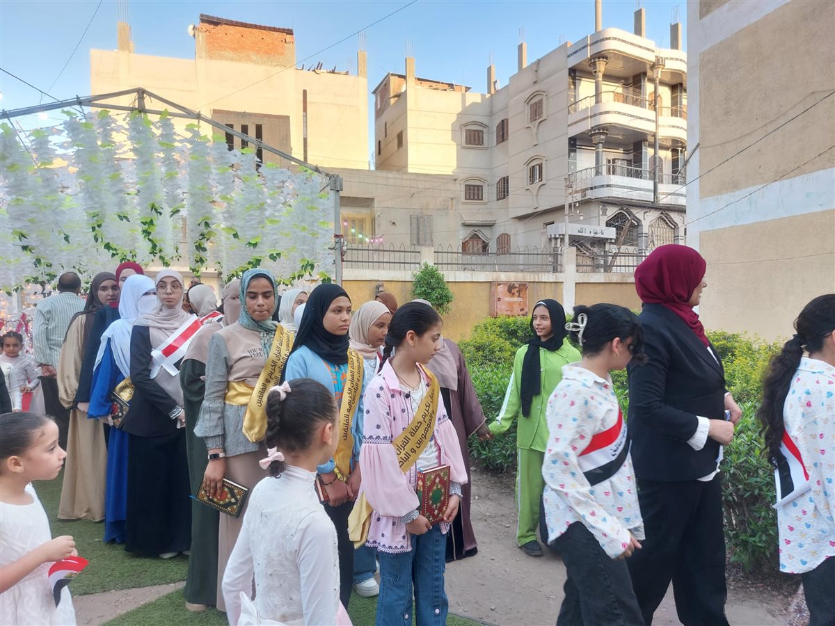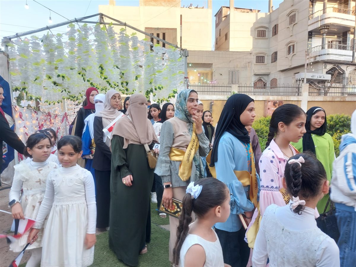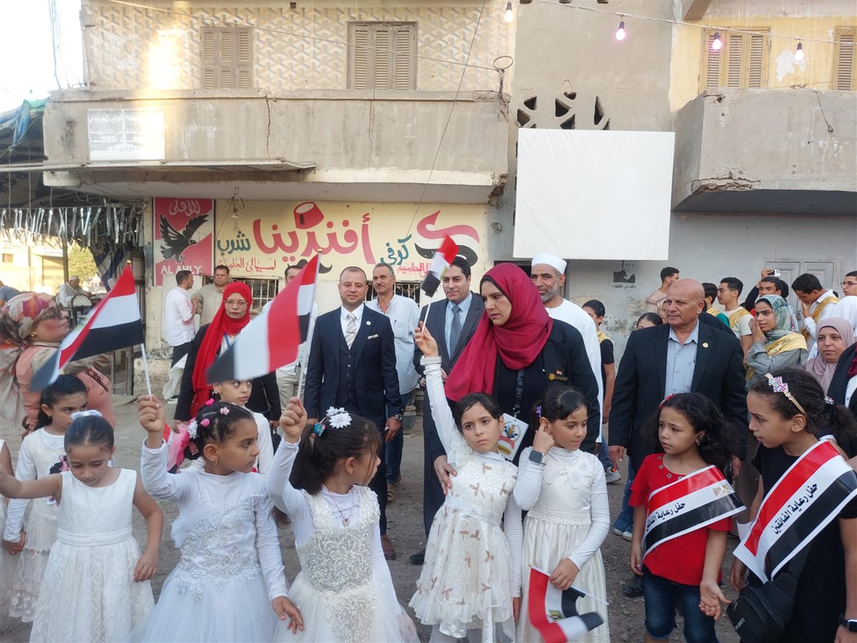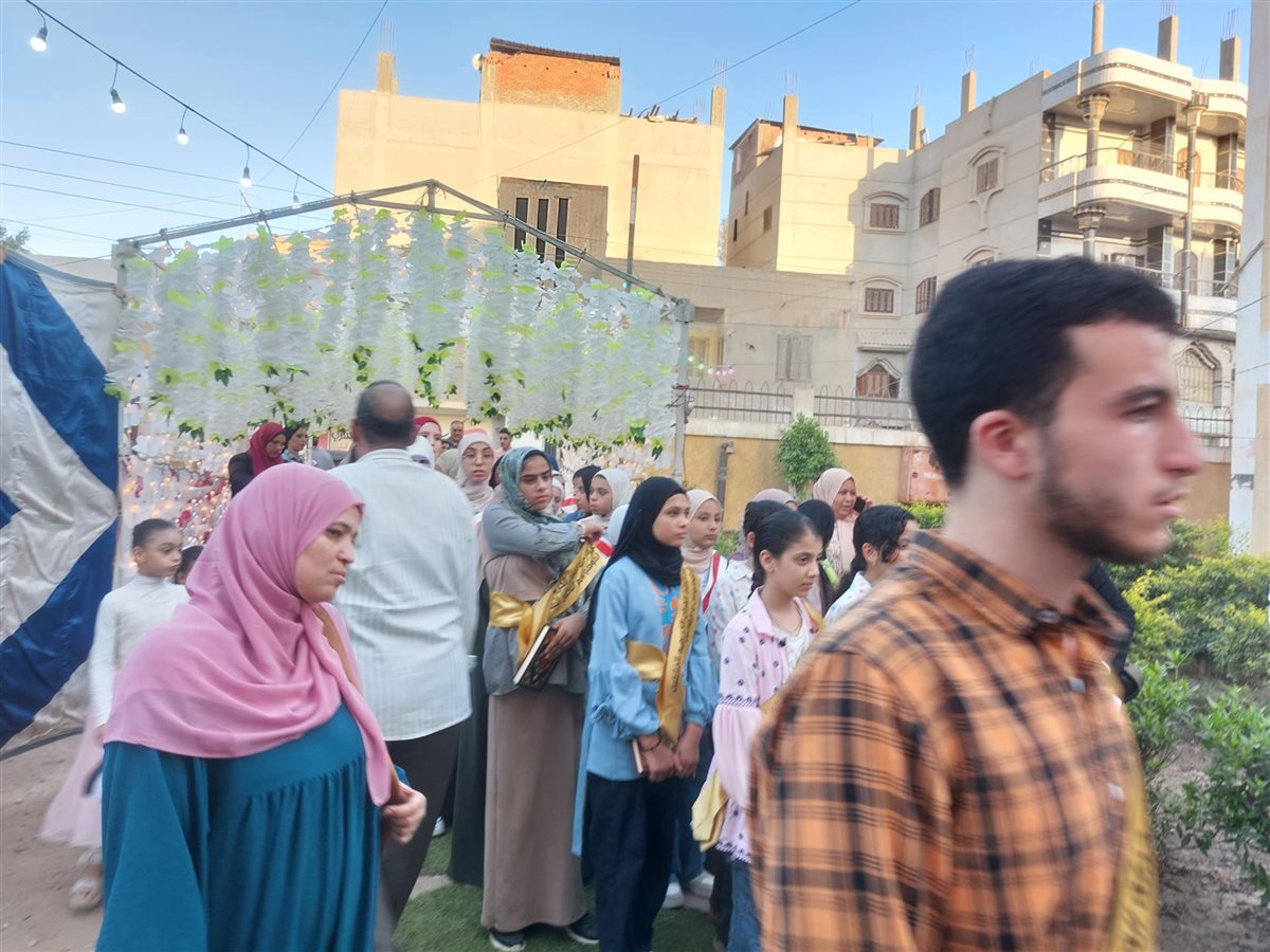 وظهر الأطفال وحفظة القرآن الكريم في مشهد تنظيمي حاملين كتاب الله ويحيطهم أولياء الأمور وتعالت منهم الزغاريد وتقدم المتفوقين وحفظة القرآن مشايخ القرية ورجال المجتمع المدني.