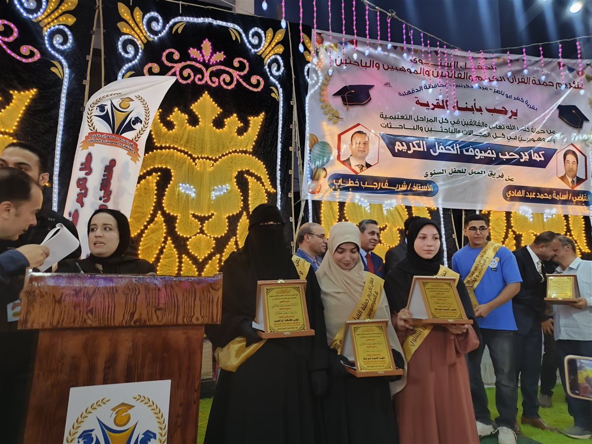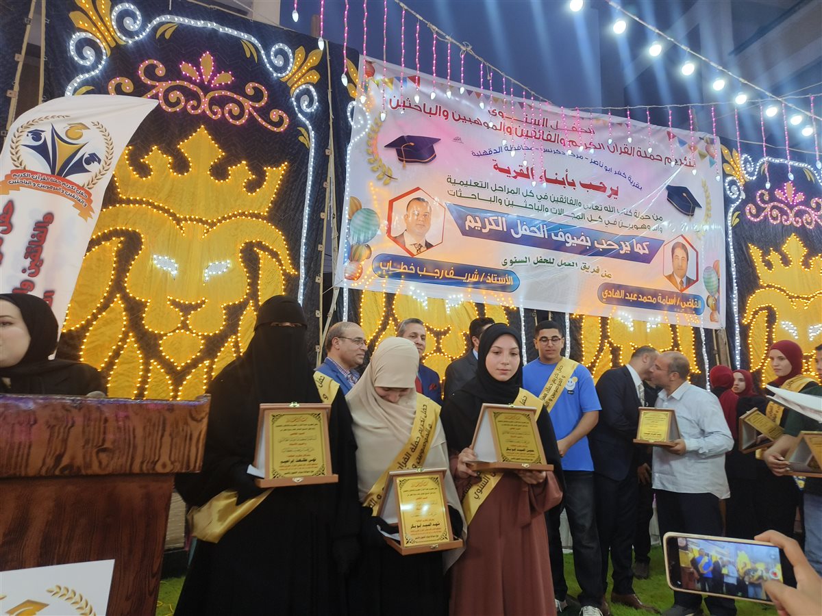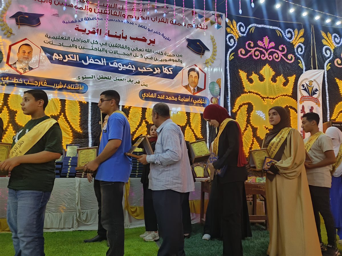 تكريم أبناء القرية بإعطائهم جوائز عبارة عن دروع ومصاحف ومبالغ مالية