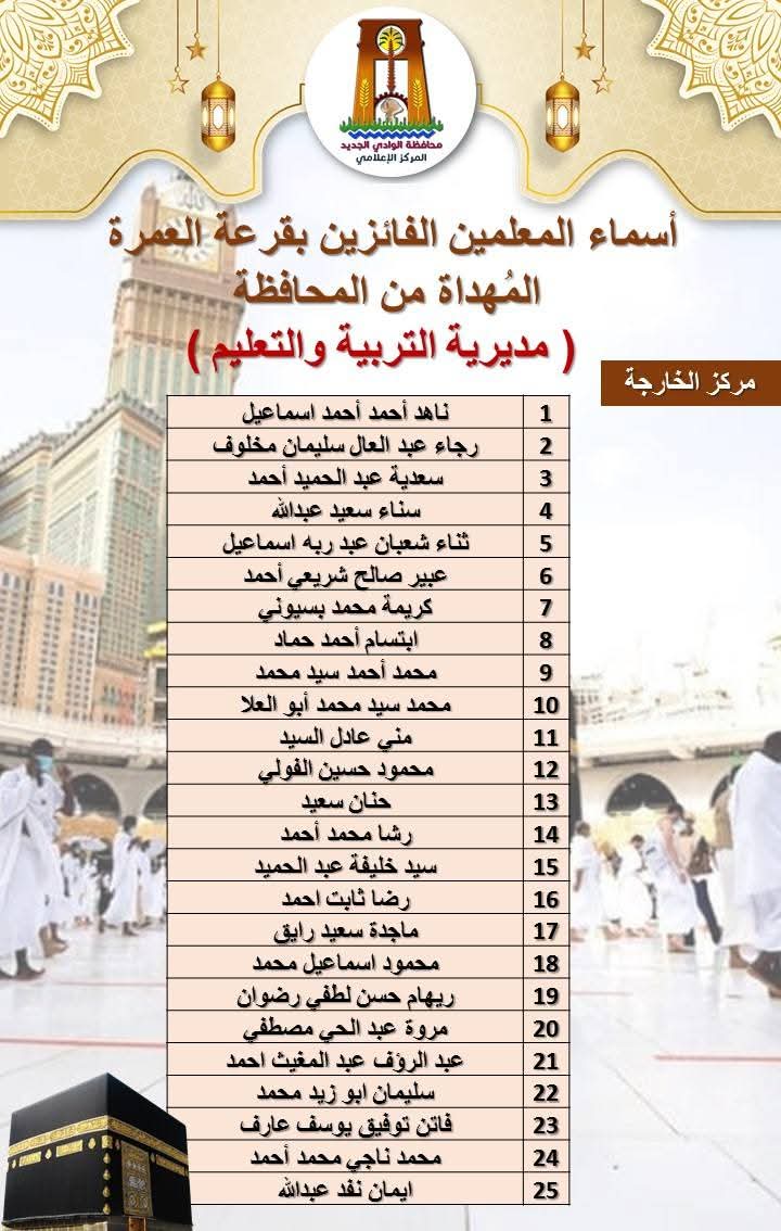 إجراء القرعة العلنية على 65 رحلة عمرة مجانية للعاملين بالتعليم والأزهر بالوادي الجديد