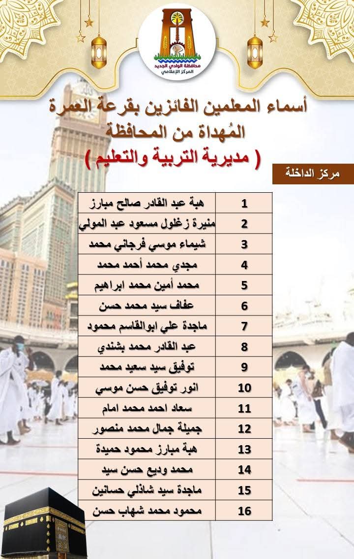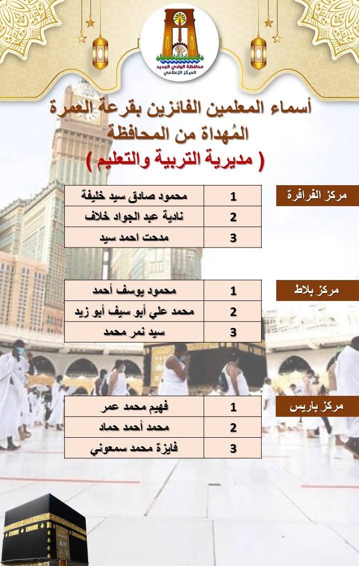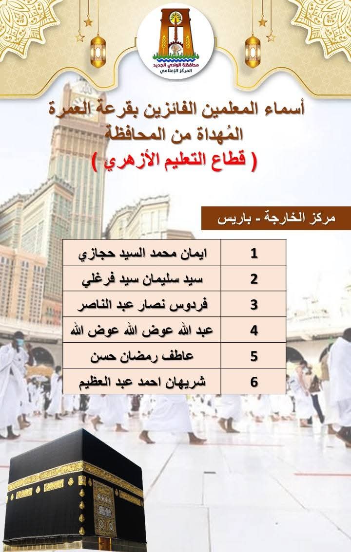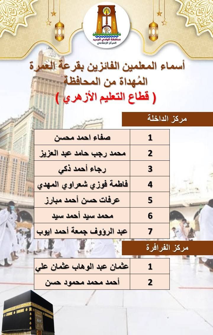 أجريت القرعة برئاسة سيد محمود سكرتير عام المحافظة، وبحضور الدكتور سامي فضل وكيل وزارة التربية والتعليم بالمحافظة، وفضيلة الشيخ شعبان مرعي رئيس الإدارة المركزية لمنطقة الوادي الجديد الأزهرية.