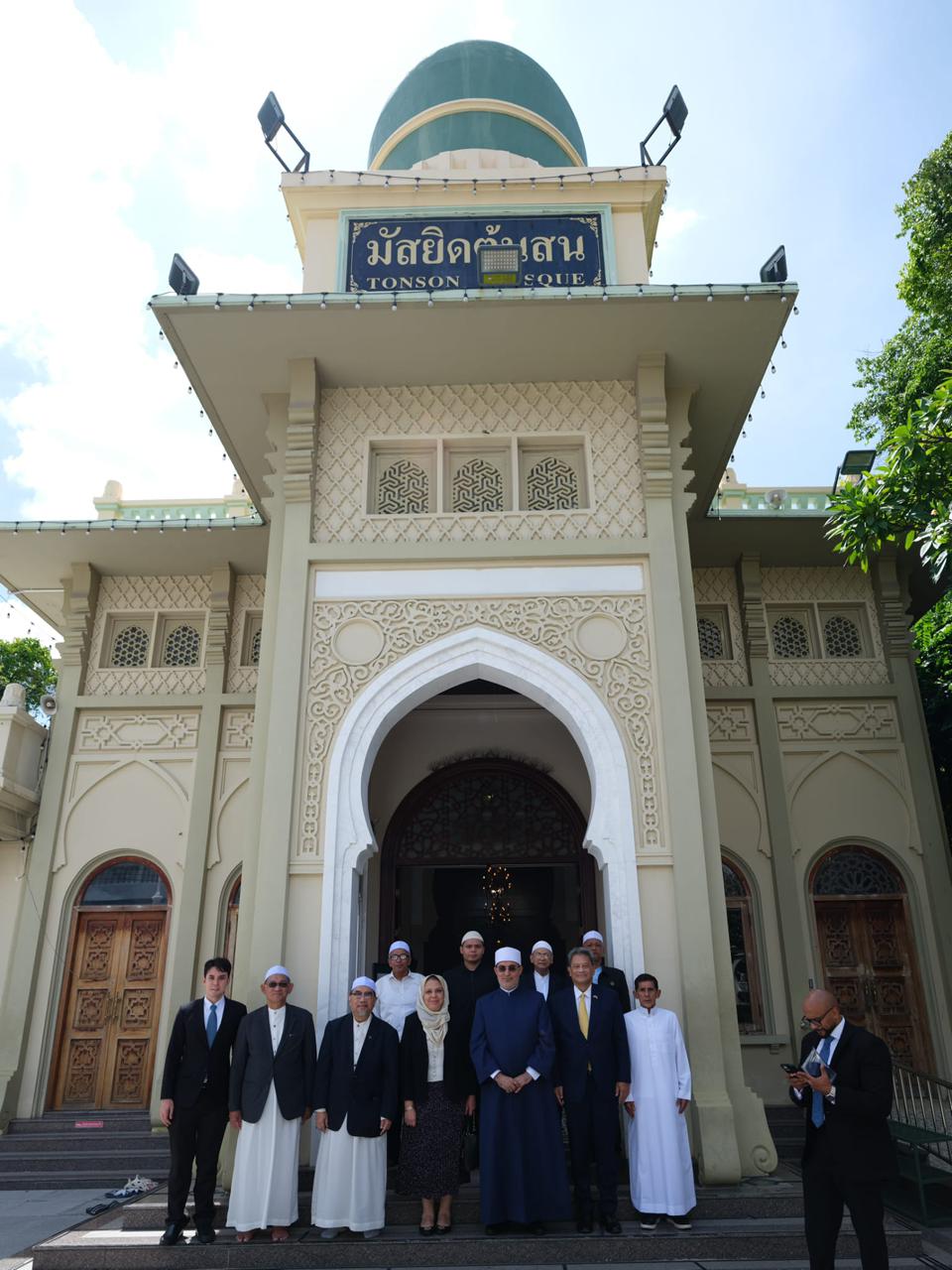 زار د. نظير محمد عياد، مفتي الجمهورية، رئيس الأمانة العامة لدور وهيئات الإفتاء في العالم، في إطار زيارته الرسمية إلى مملكة تايلاند، مسجد "طونسون" العريق، أقدم مسجد سُنّي في المملكة، والذي يعود تاريخ إنشائه إلى أكثر من ثلاثمائة عام، حيث التقى نخبة من العلماء والدعاة ورجال الدين والشخصيات الإسلامية البارزة في البلاد، وسط أجواء عكست عمق العلاقات الأخوية والروحية التي تربط مصر بالأمة الإسلامية في مختلف بقاع العالم.