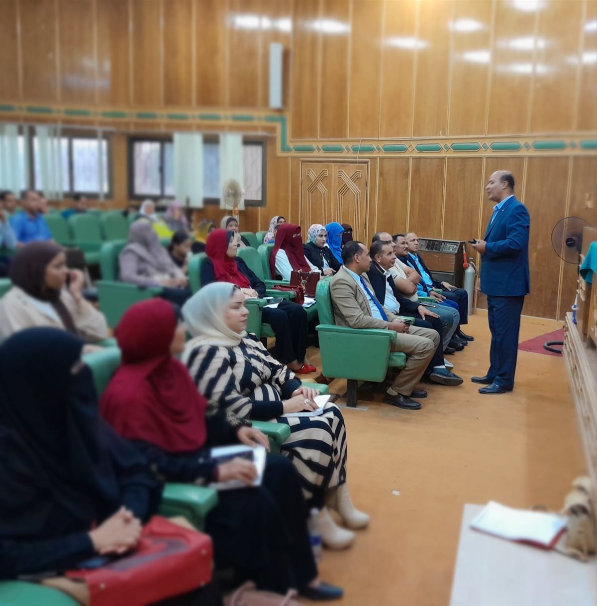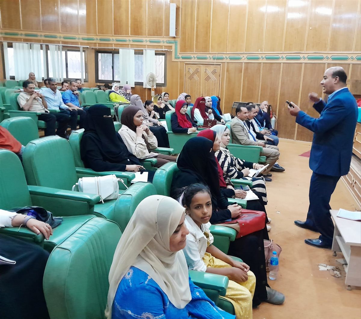 حاضر في الندوة: الدكتور عبد العال السيد معروف رئيس الإتحاد العربي للتدريب وتنمية الموارد البشرية ورئيس المجلس الأعلى للمدربين العرب، وسط حضور ممثلين من وزارة الكهرباء، ولفيف من المتخصصين المعنيين بالطاقة، وعدد من أصحاب المشروعات الصغيرة.