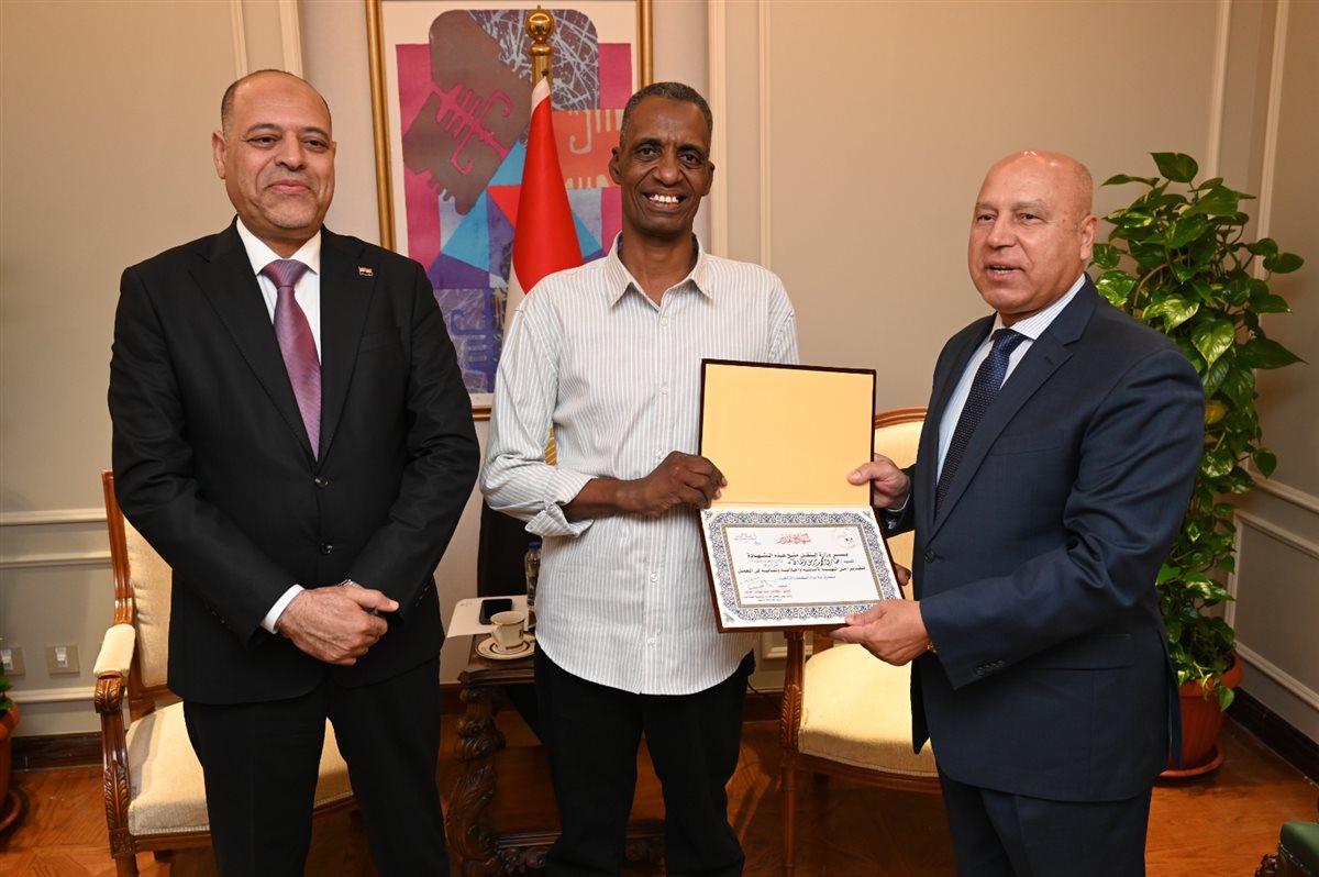 وزيرا النقل والعمل يكرمان طارق محمد برس عامل مزلقان السادات ببني سويف