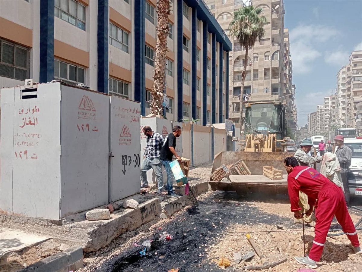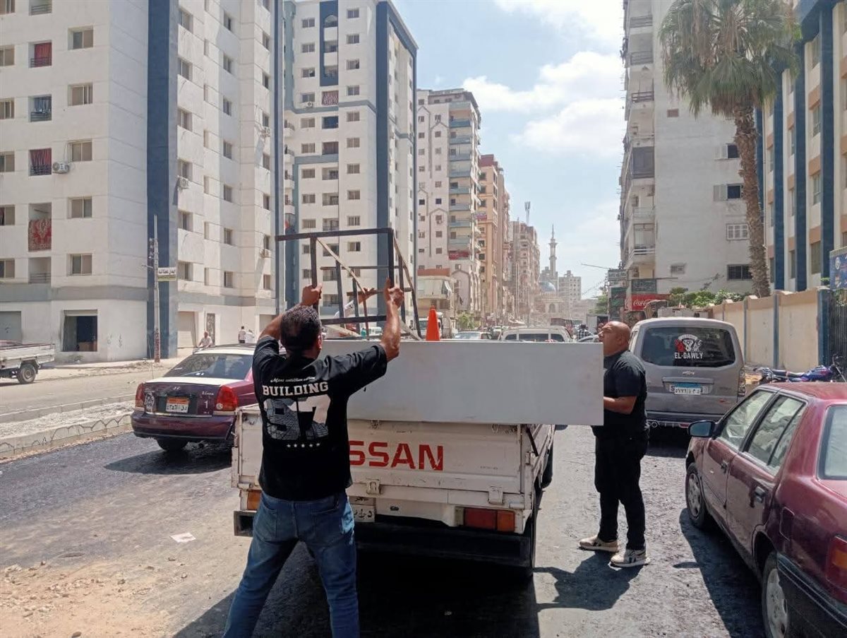 حملات مكبرة لرفع التعديات على حرم الطرق بحى غرب المنصورة