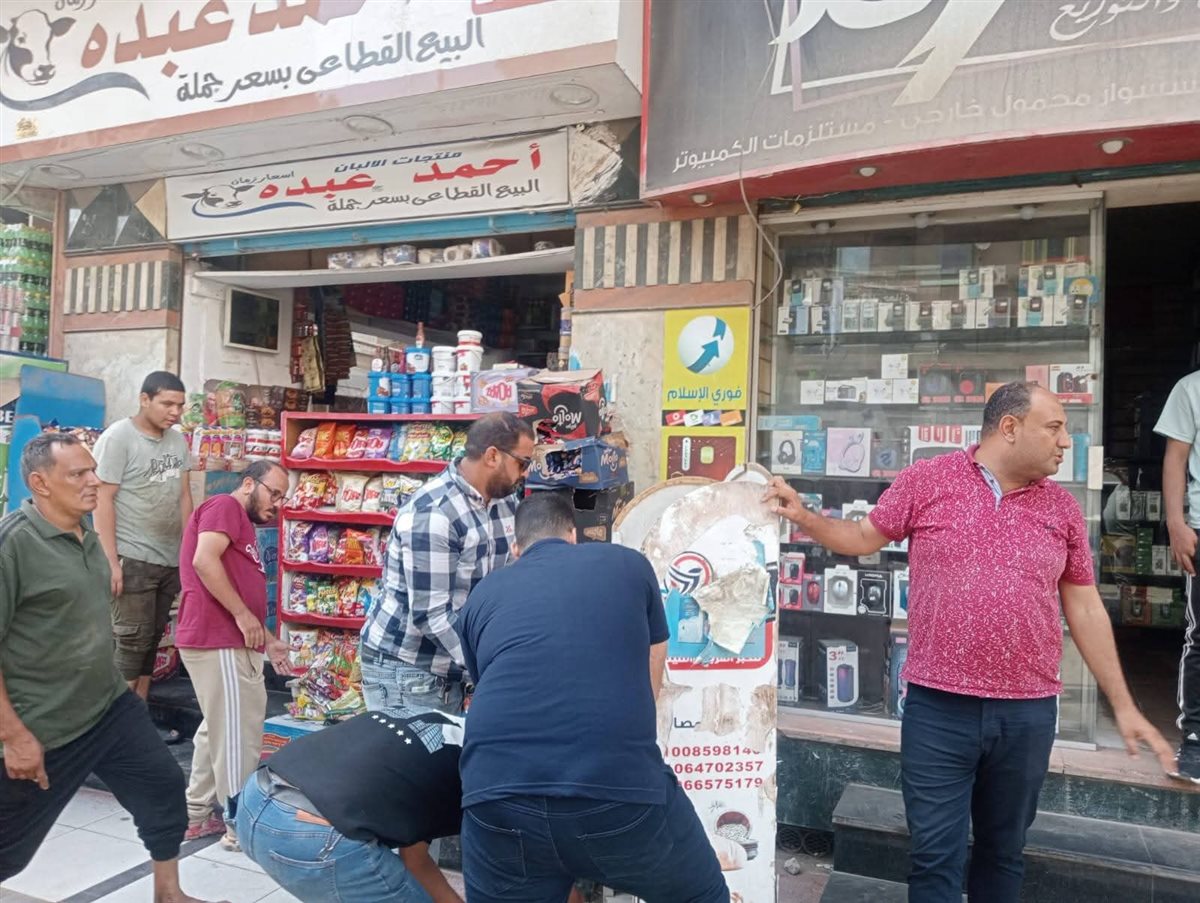 رفع تعديات المحال التجارية والأكشاك والكافيهات على حرم الطريق،