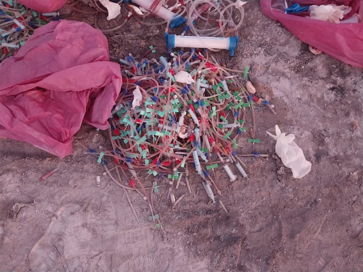 وأضاف وكيل وزارة الصحة والسكان بمحافظة الفيوم، أنه بفحص النفايات محل الأخطار، تبين أنها نفايات من غسيل الكلي وبها أنابيب تحاليل معملية ووصلات وفلاتر غسيل، وتم التوصل إلى مصدرها، بأحد مراكز الغسيل الكلوي الخاصة، وأبلغت الأجهزة المختصة لاتخاذ الإجراءات القانونية تجاه المركز المخالف، وتم التخلص من النفايات بطريقة آمنة وصحية حفاظا على الصحة العامة والبيئة.