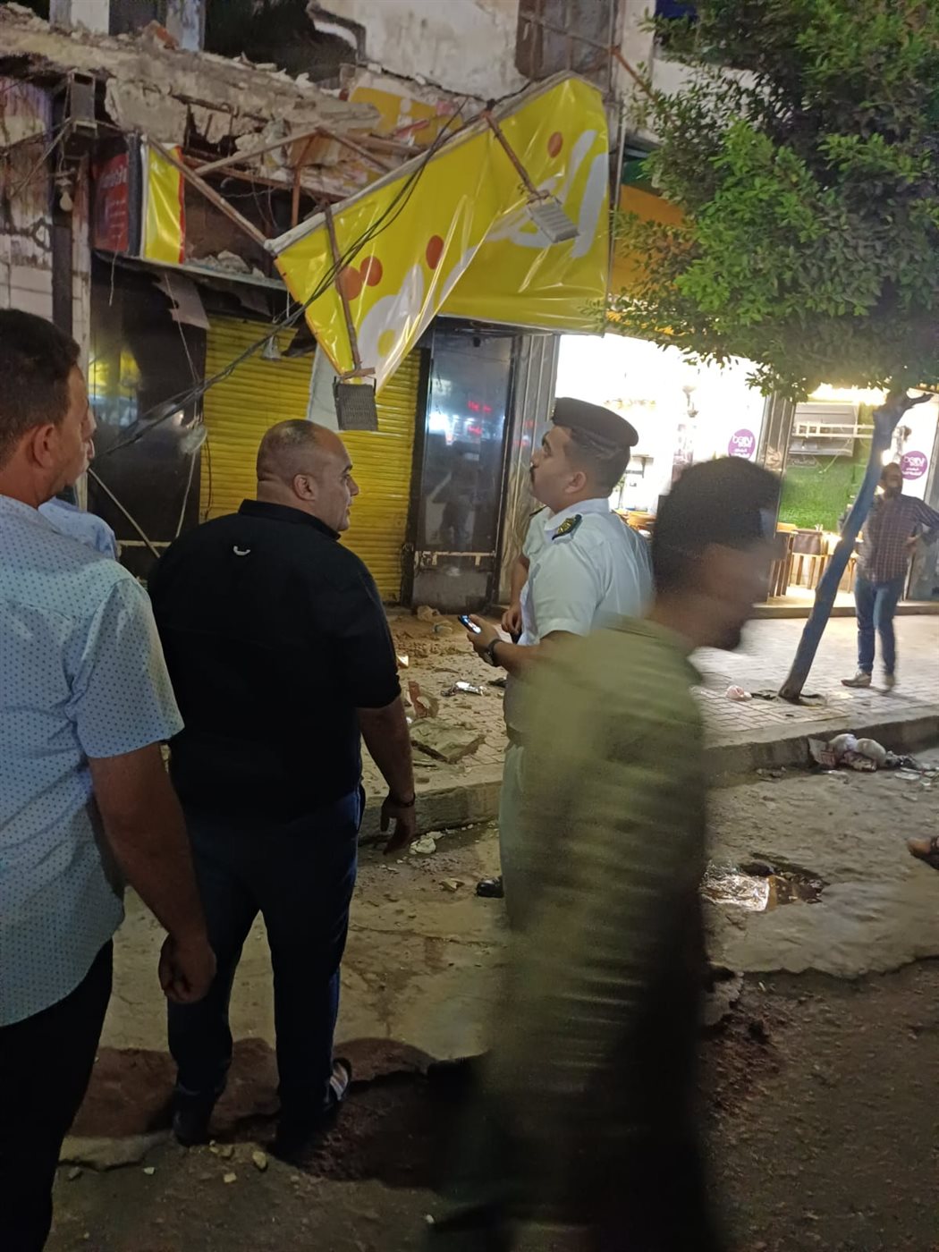 جرى فرض كردون أمني حول العقار، وجارٍ إزالة الأجزاء المعلقة والآيلة للسقوط وذلك حفاظًا على سلامة المارة.