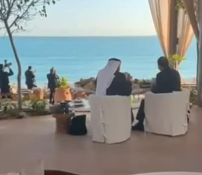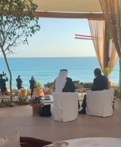 رافق الرئيس عبدالفتاح السيسي الشيخ محمد بن زايد رئيس دولة الإمارات العربية المتحدة بشاطئ مدينة العلمين الساحرة حيث جلسا سويا، وتناولا وجبة الإفطار، وتزامنا مع ذلك رفرف علم البلدين في سماء المدينة.