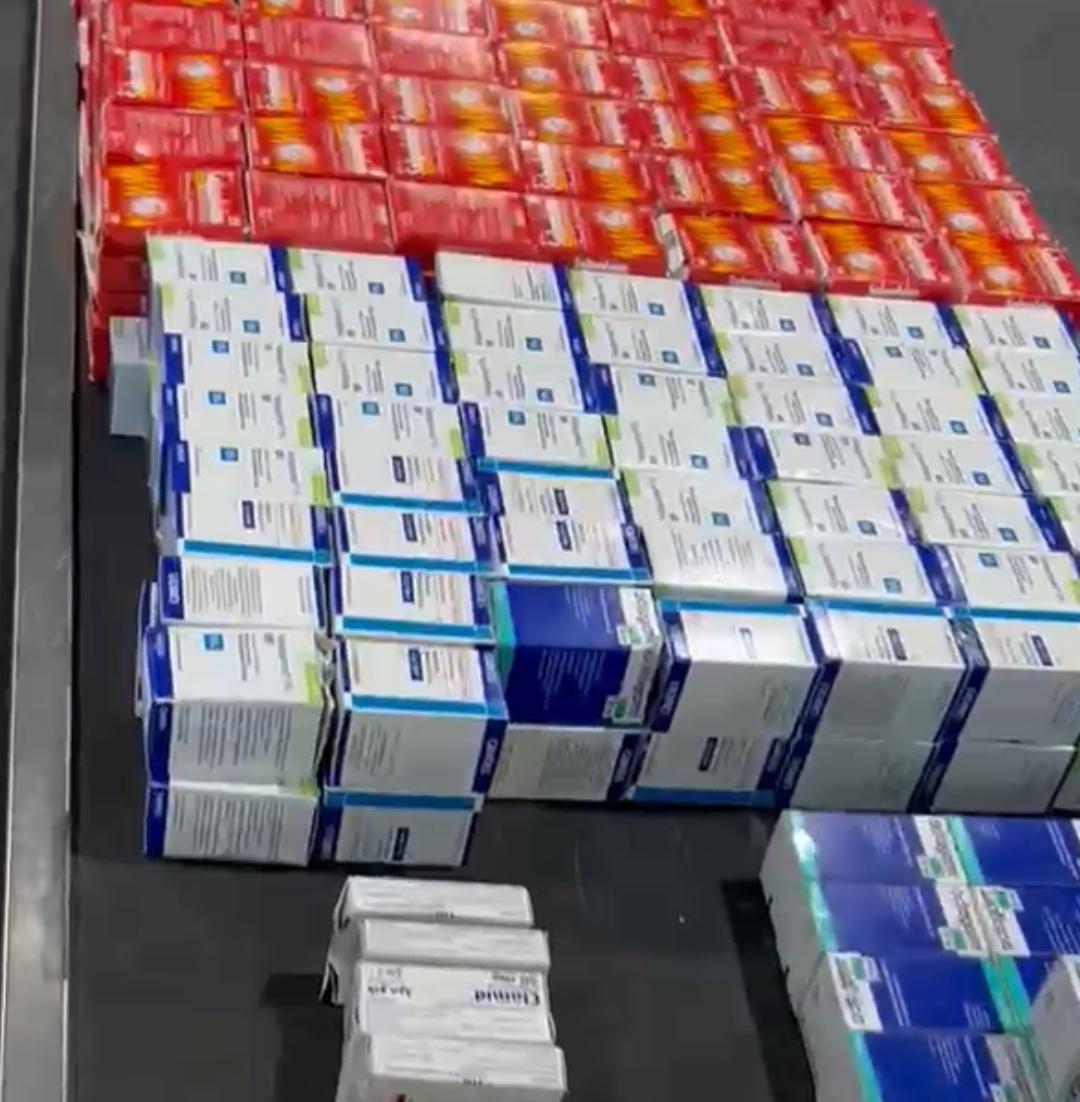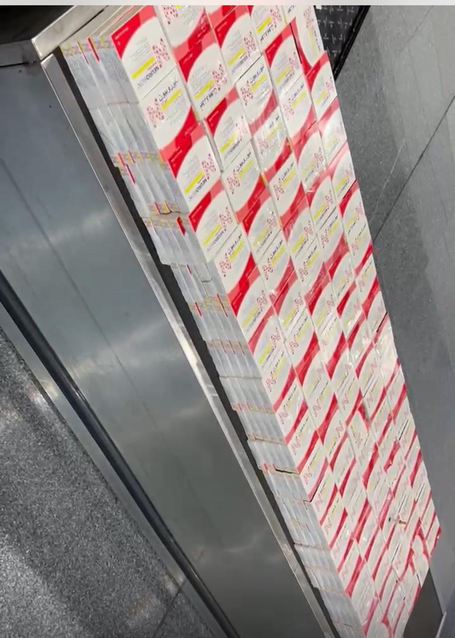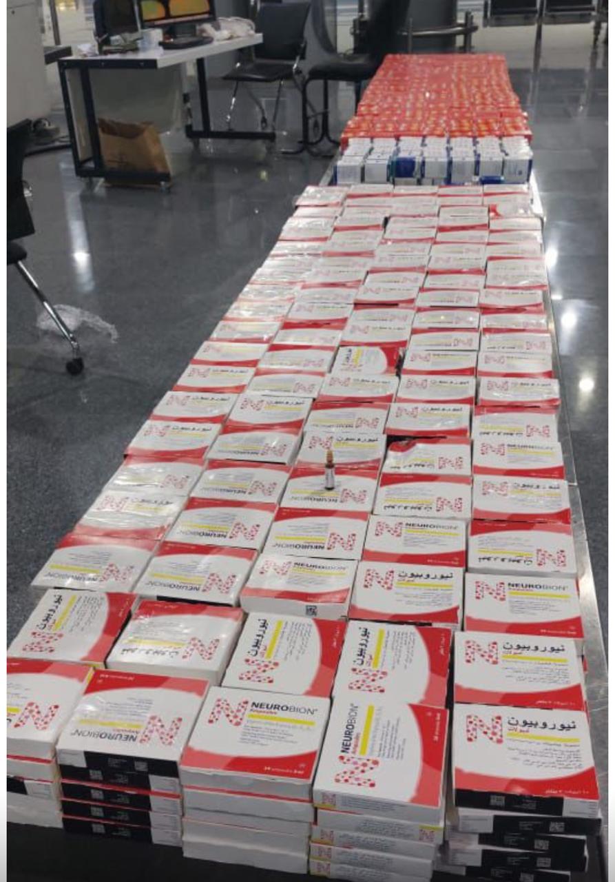 وقام مدير الحركة بتكليف محمود محمد مصطفى مامور الجمرك بتفتيش الحقائب يدويا مما اسفر عن وجود ٦١٥ أمبول وزجاجات دوائية نيوربيون، Octagam 2.5، Flebogamma 5% ). واثناء التفتيش، وقد فرغت الصالة من الركاب تلاحظ لرجال الجمارك وجود حقائب أخرى فتم سؤال الراكب إذا كانت تخصه فأجاب بالنفي، وبمناظرة ليبل الحقائب تبين أنها تخص نفس الراكب.