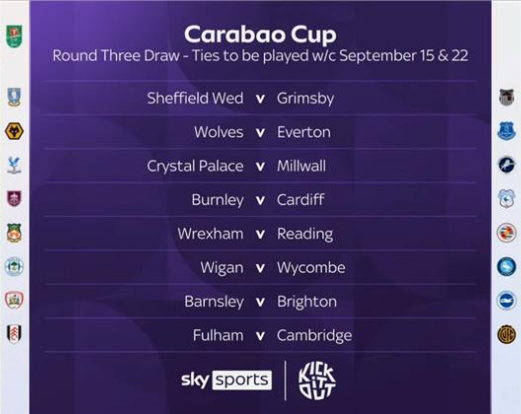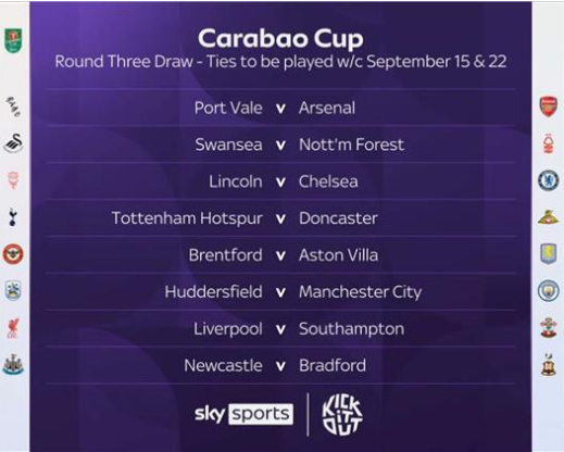 وتقام الجولة الثالثة من كأس رابطة المحترفين الإنجليزية في الفترة من 15 إلى 22 سبتمبر.