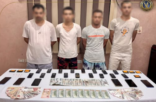 عقب تقنين الإجراءات، تم ضبط المتهمين وبحوزتهم مبالغ مالية بعملات محلية وأجنبية، 32 شريحة هاتف محمول خاصة بشركات مختلفة، و23 هاتف محمول، وبفحصها فنيًا تبين احتواؤها على دلائل تؤكد نشاطهم الإجرامي.