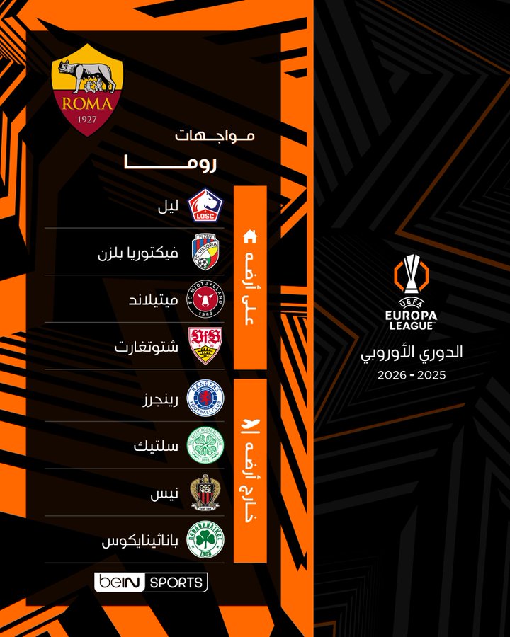 قرعة الدوري الأوروبي، تعرف على مباريات روما بدور المجموعات