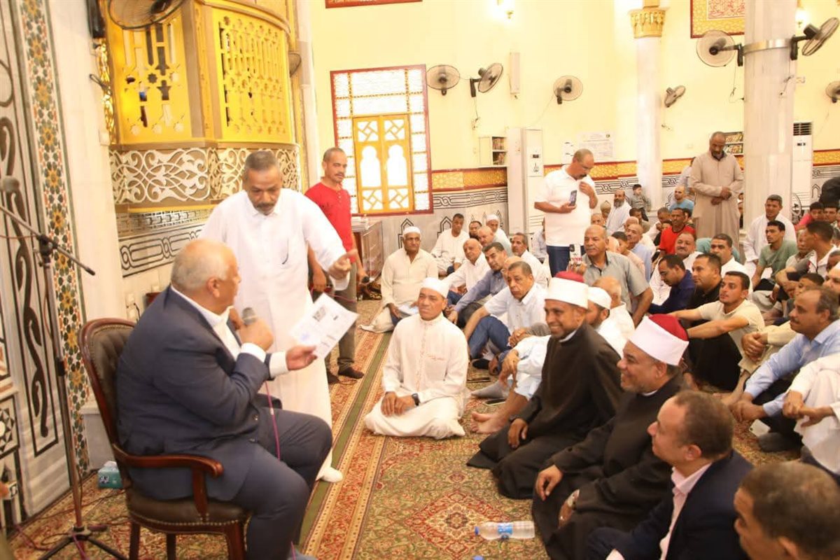 واستمع المحافظ إلى مطالب الأهالي، موجّها بعدد من التوجيهات جاء أبرزها: إجراء حصر كامل لقدامى المحاربين ومنحهم رحلات عمرة مجانية بنظام القرعة العلنية، وذلك خلال احتفالات المحافظة بالعيد القومي.