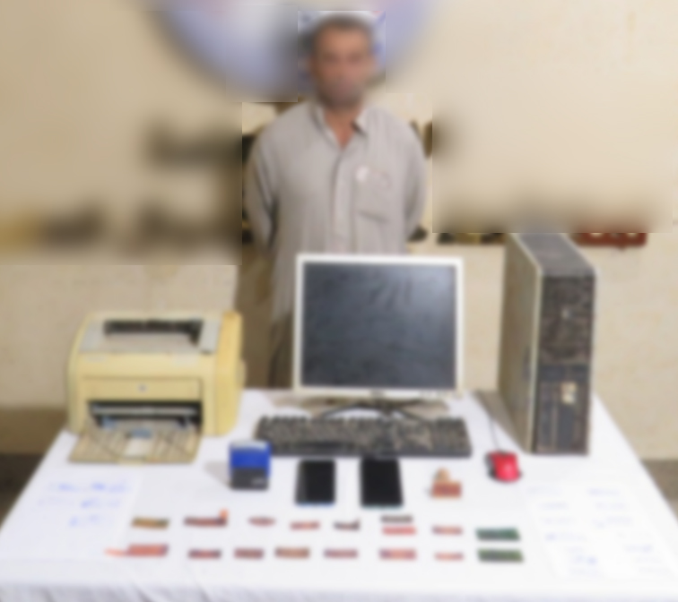 وعقب تقنين الإجراءات تم استهداف المتهم وضبطه، وبحوزته مجموعة من الأختام والأكلاشيه بأسماء جهات مختلفة، وهاتفين محمولين، وأدوات وأجهزة مستخدمة في أعمال التزوير.