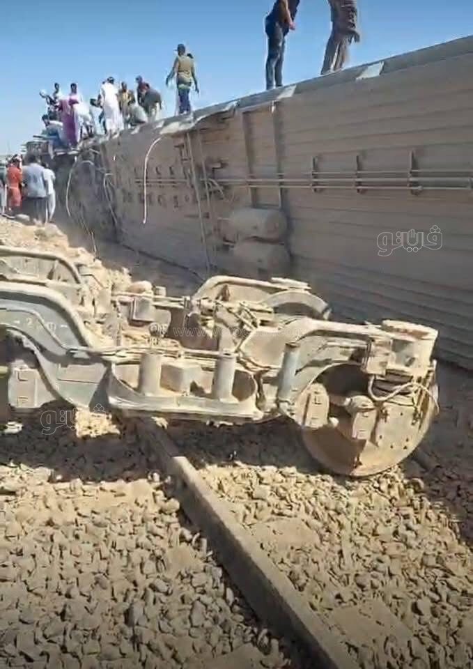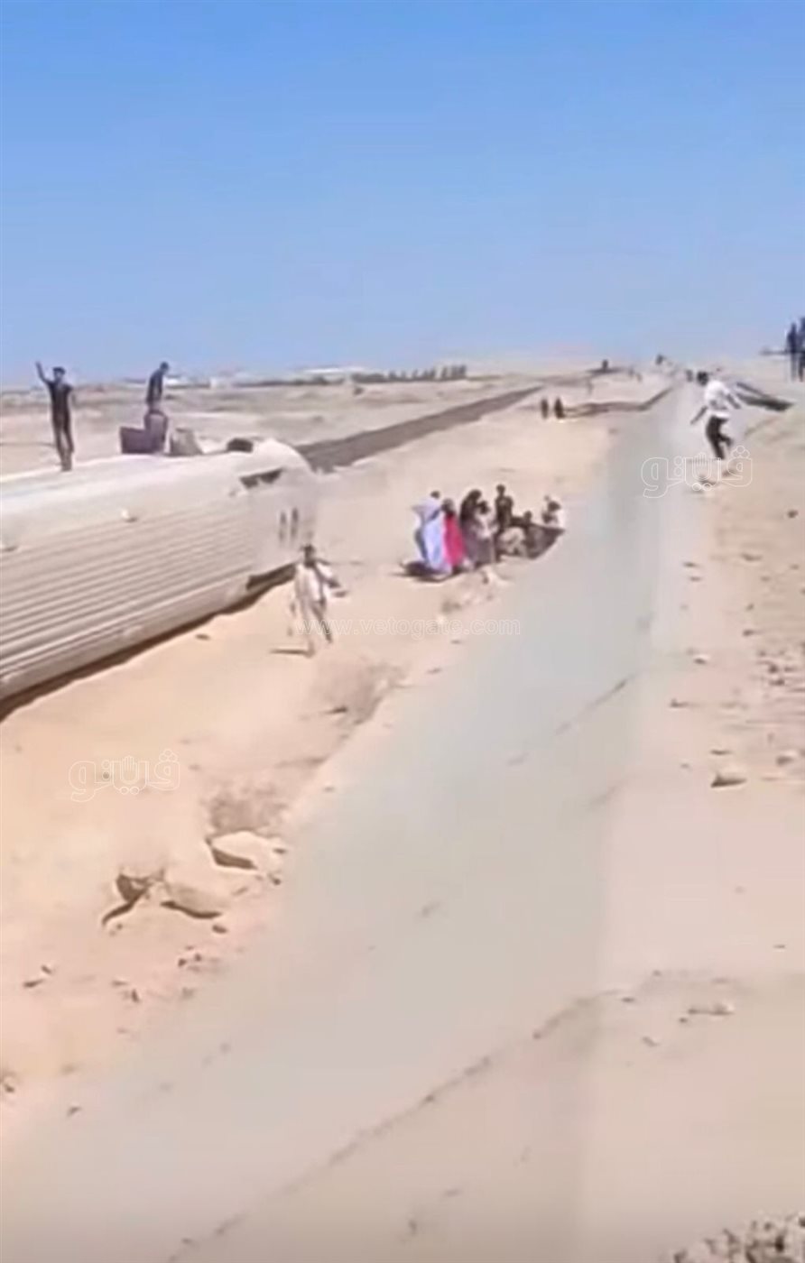 الصور الأولى لانقلاب عدد من عربات قطار مطروح بالضبعة