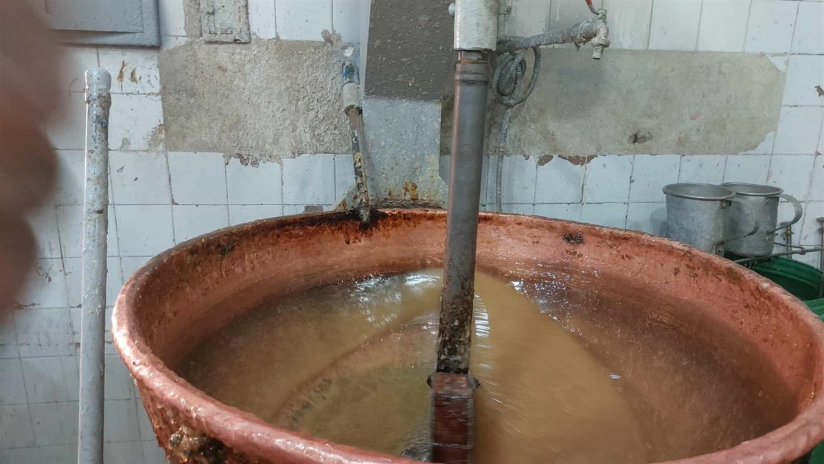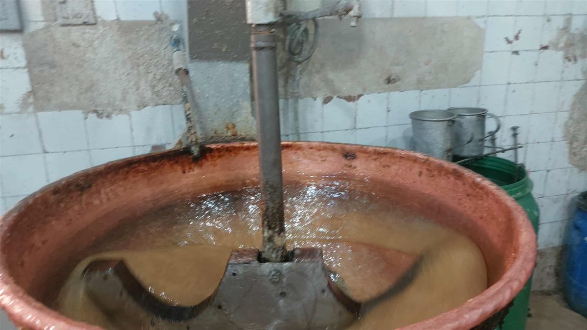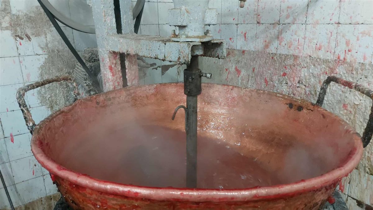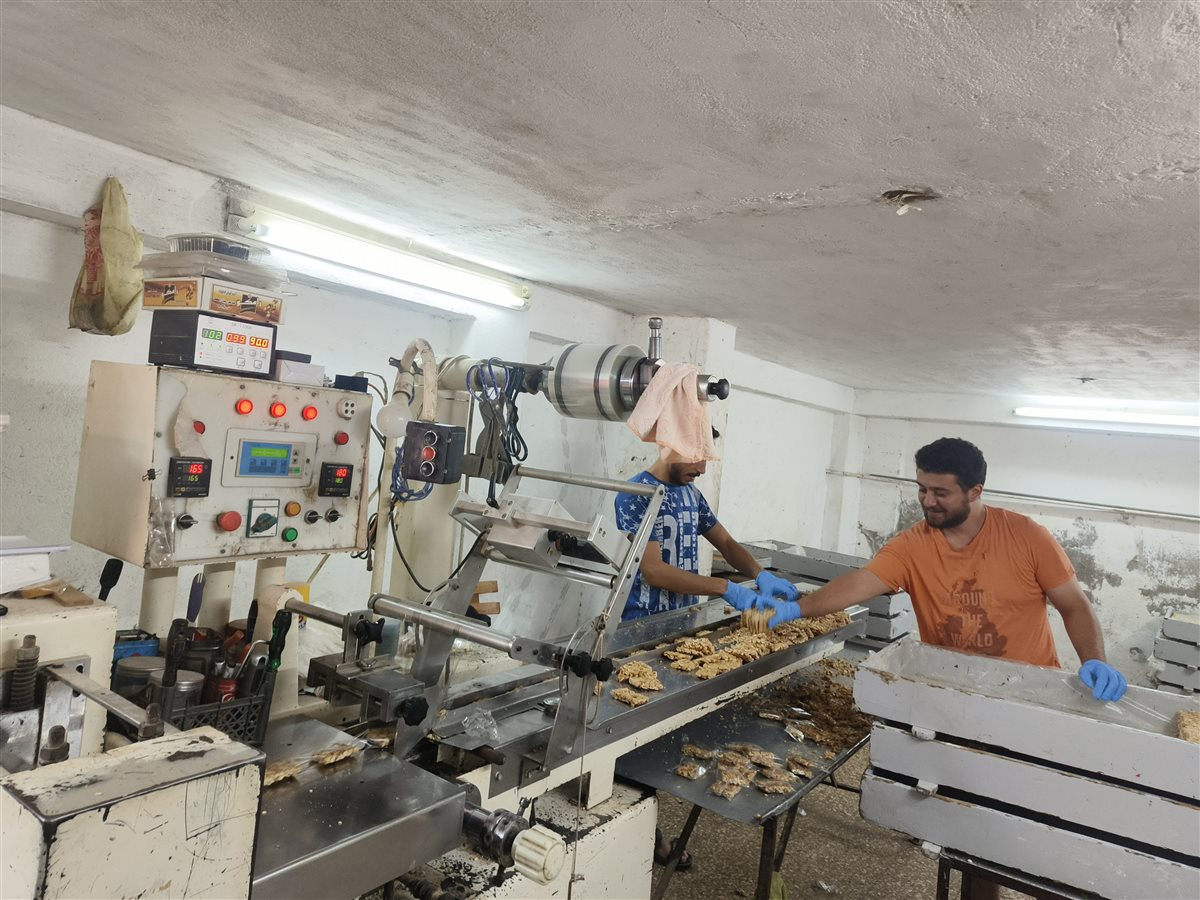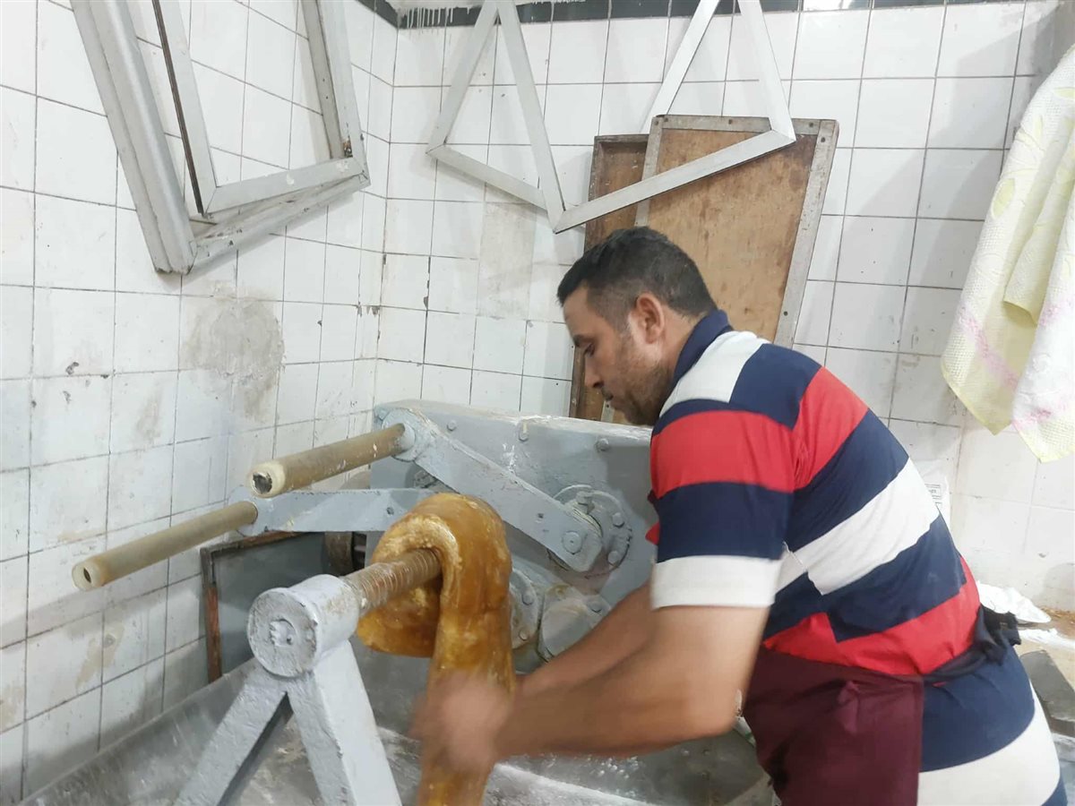 رائحة السائل السكري المذاب والمسخن والذي سيعاد تسخينه مرة أخرى تملأ كافة أرجاء المكان، وأصوات ماكينات الدك والتقطيع والتغليف تعلو فوق كل الأصوات