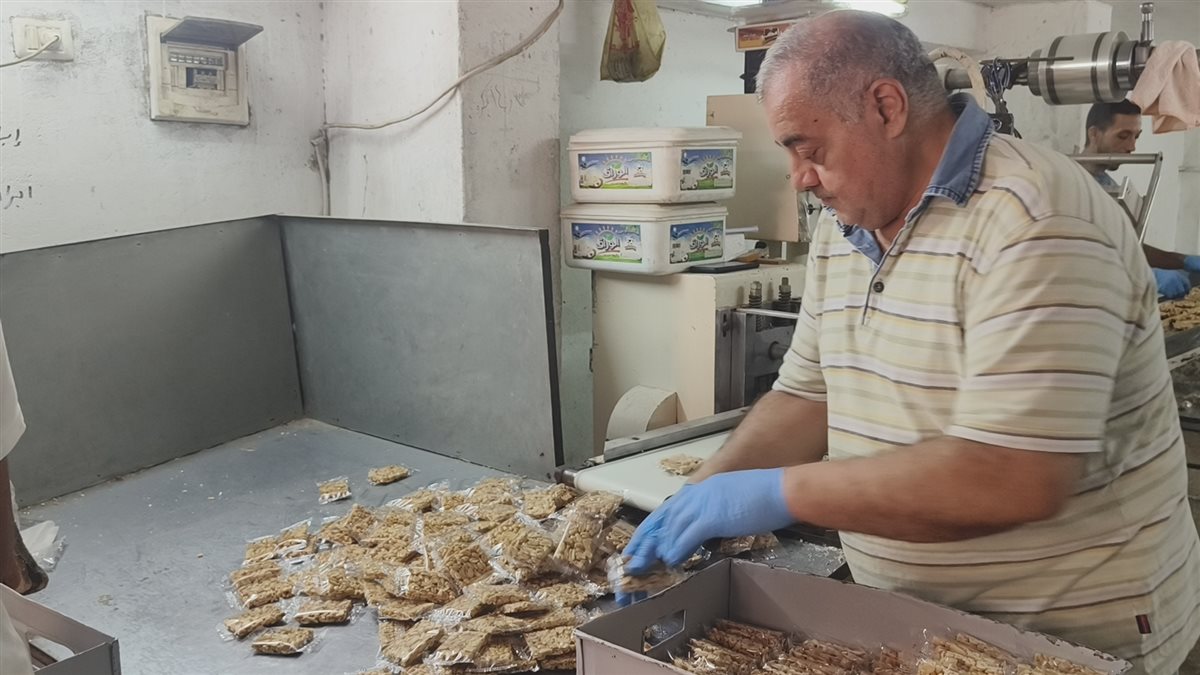 وتابع: أما بالنسبة للتصنيع المعتاد للسمسية فهو عبارة عن السمسم وندمجه مع السكر والعسل وبعد كدا بيستوي على النار وبعدها يتم تشكيلة لقطع وتغليفه، أما بالنسبة للفولية فهي بنفس الطريقة، بنجيب الفول السوداني ونغليه مع السكر الجلوكوز والعسل ونقطعة ونغلفة".