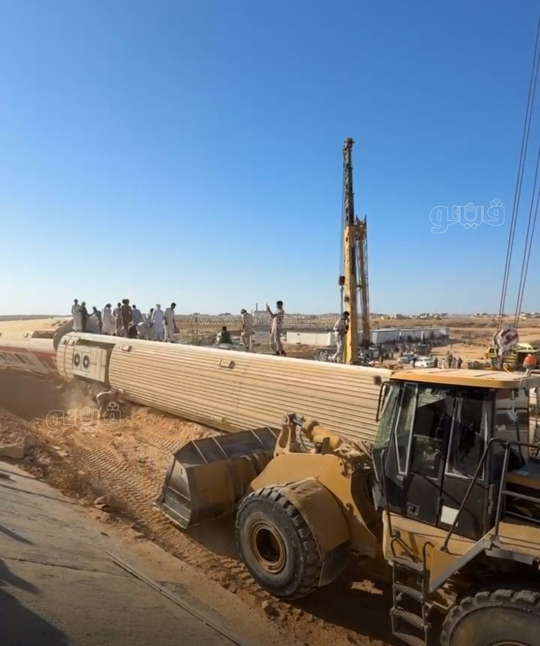 وحصلت “فيتو” على لقطات جديدة لمحاولات رفع عربة قطار مطروح “روسي مكيف” بالقرب من زاوية العوامة بمدينة الضبعة بمحافظة مطروح.