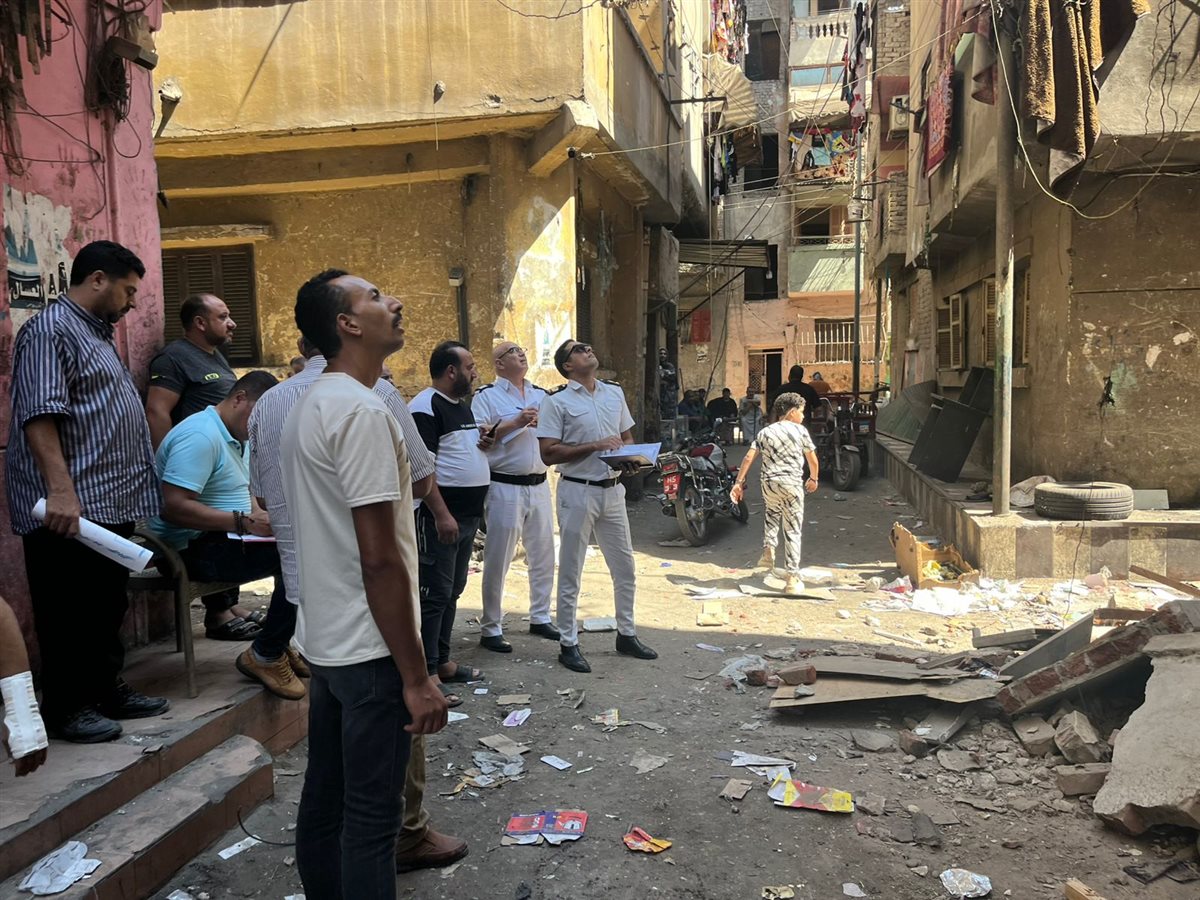 على الفور توجه نائبي رئيس حي غرب المنصورة الدكتور طارق جاد، وطاقم العمل برئاسة الحى المشكل من فادى محمد مدير المتابعة الميدانية، وبلال ثروت نعيم مسئول الأزمات والكوارث، ومسئولي الإدارة الهندسية من فنيين ولجنة المنشآت إلى موقع العقار الكائن بشارع السبكي المتفرع من شارع الجلاء، وذلك بحضور أمني من قسم أول.