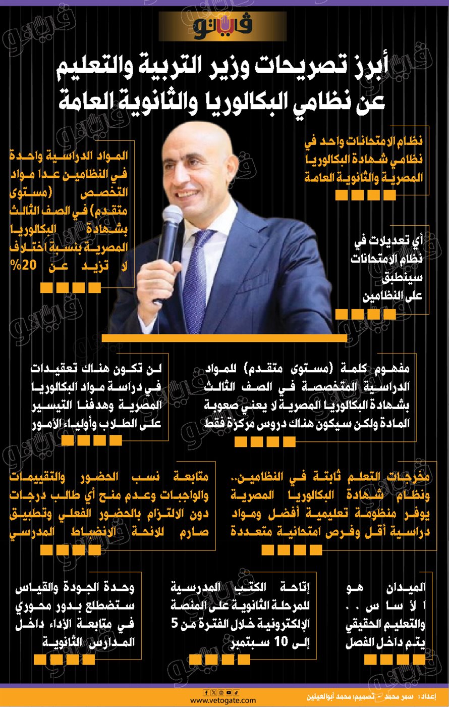 أبرز تصريحات وزير التربية والتعليم عن نظامي البكالوريا والثانوية العامة (انفوجراف)