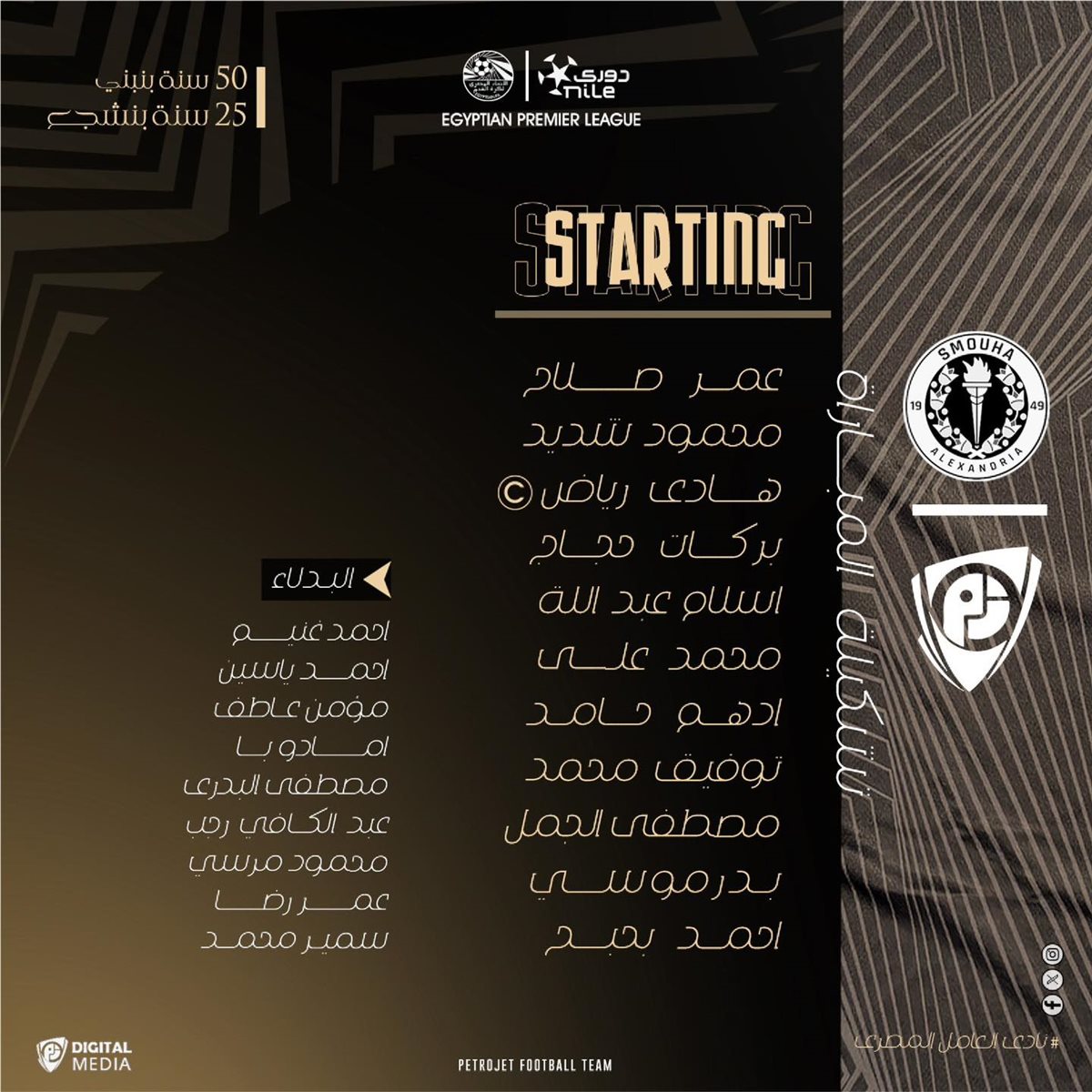 في المقابل، دخل فريق بتروجيت مباراته أمام سموحة بتشكيل مكون من: