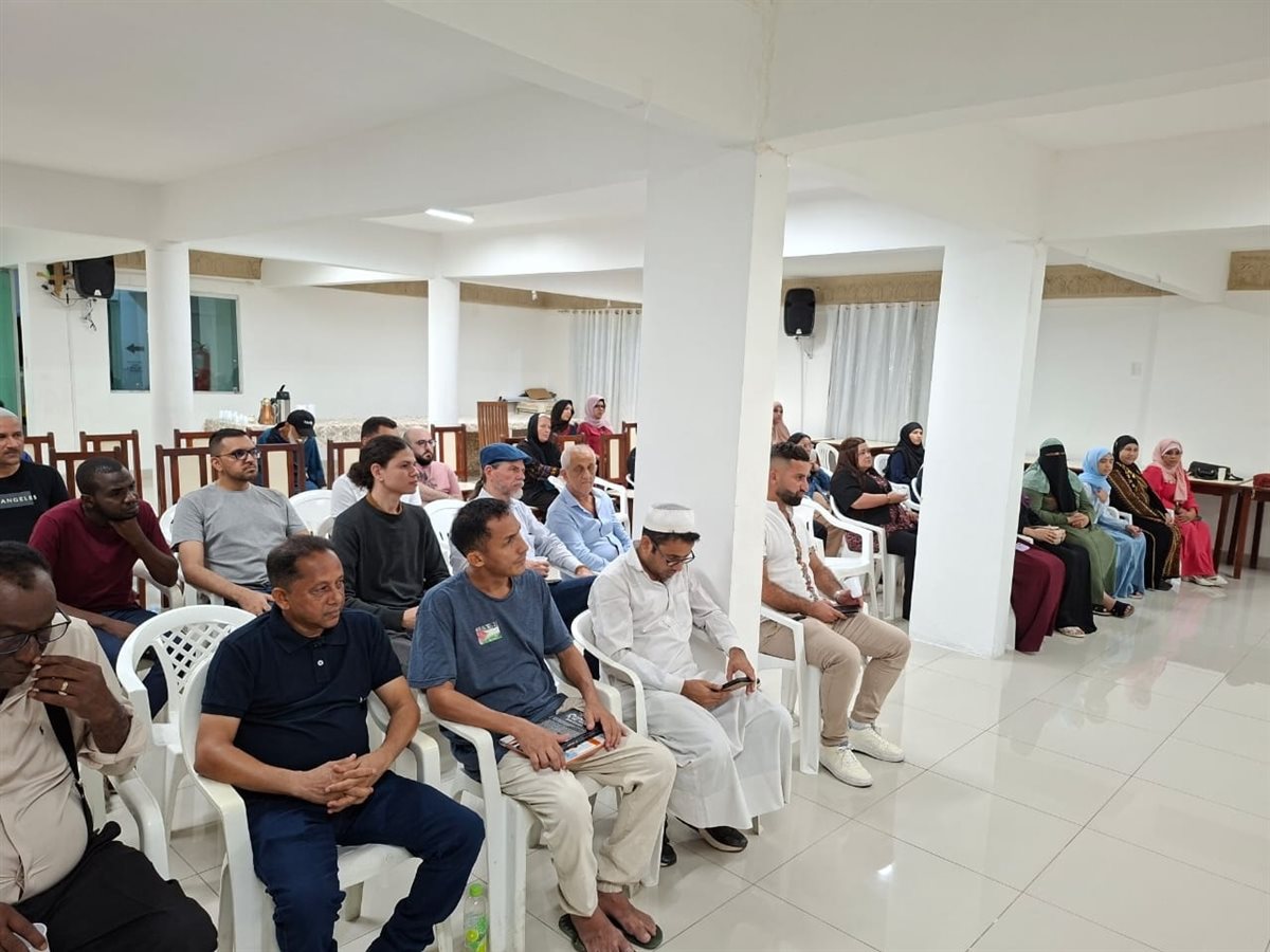 وألقى إمام المركز، الشيخ أحمد يونس أحمد، محاضرة تناول فيها مظاهر الرحمة المحمديَّة التي عمّت البشرية جمعاء، وكيف جسّد النبي الكريم ﷺ أسمى القيم الأخلاقية والإنسانية، وقد قُدِّمت المحاضرة باللغة العربية مع ترجمة فورية إلى البرتغالية، بما أتاح للحضور -من المسلمين وأبناء الشعب البرازيلي- التفاعل الكامل مع مضامينها.