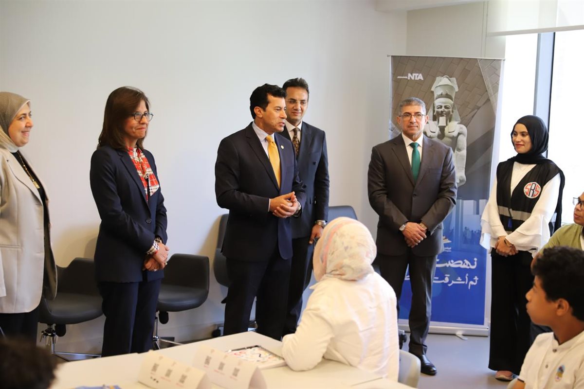 وجاءت الزيارة لمتابعة فعاليات "البرنامج الرئاسي لتأهيل النشء للقيادة"، والالتقاء بخريجي برنامج "كوادر وزارة الشباب والرياضة".
