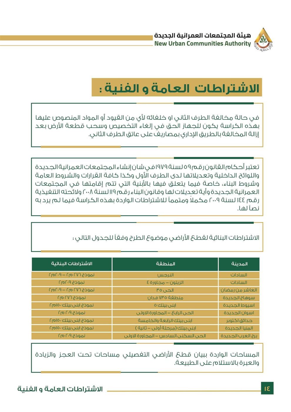 كراسة شروط أراضي الإسكان المتوسط (صور)