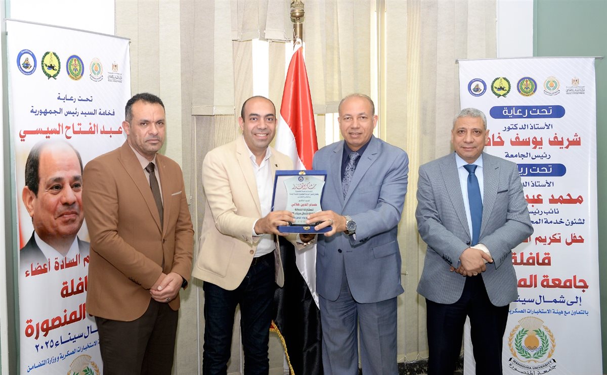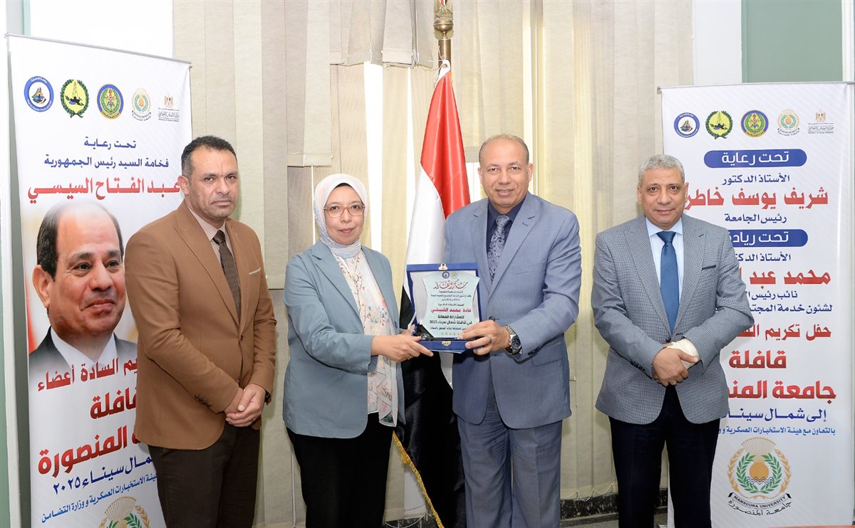 وثمّن رئيس الجامعة التعاون المثمر مع هيئة الاستخبارات العسكرية ومديرية التضامن الاجتماعي بالدقهلية ومحافظة شمال سيناء، كما وجه الشكر لفريق القافلة وأعضاء الجهاز الإداري على جهودهم الكبيرة، مؤكدًا فخر الجامعة بنماذجها المشرفة من أعضاء هيئة التدريس والإداريين والطلاب الذين ضربوا أروع الأمثلة في خدمة الوطن، ومشددًا على التزام الجامعة الكامل بعلاج جميع الحالات المحوّلة إليها مجانًا.