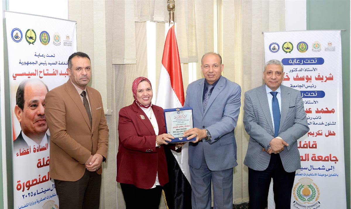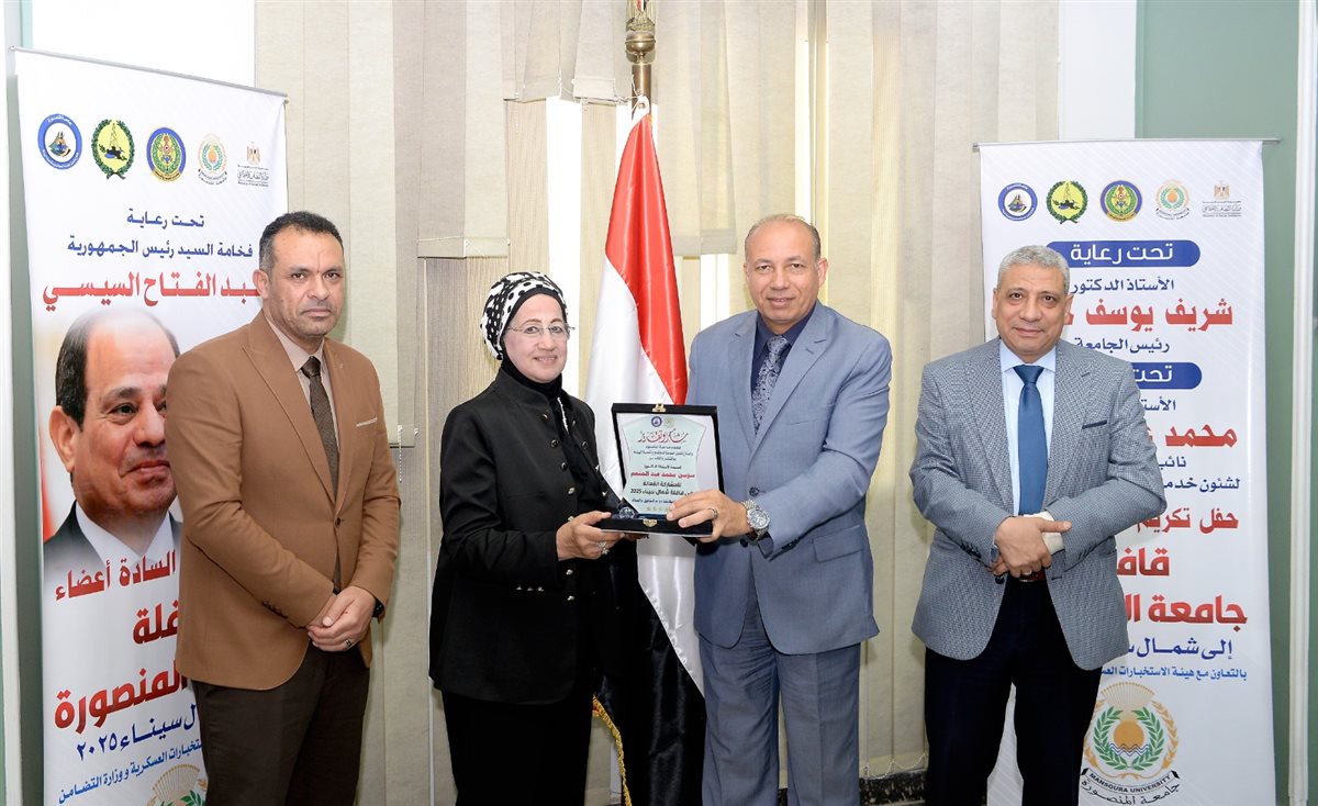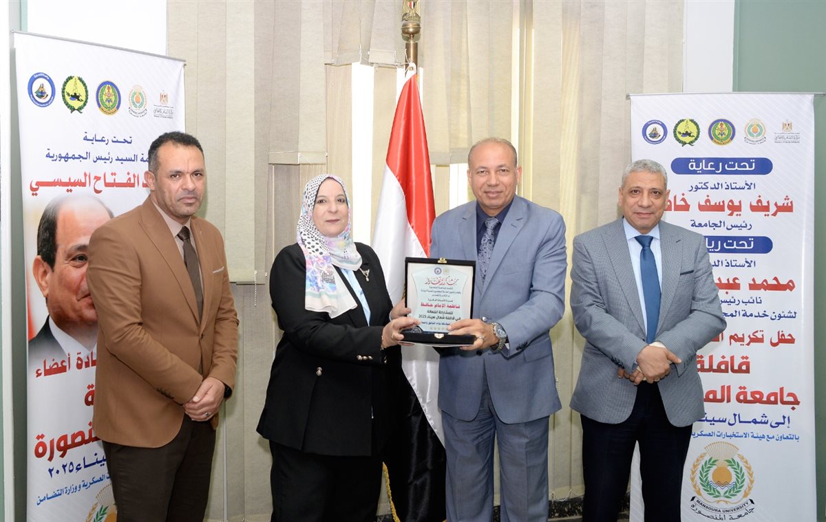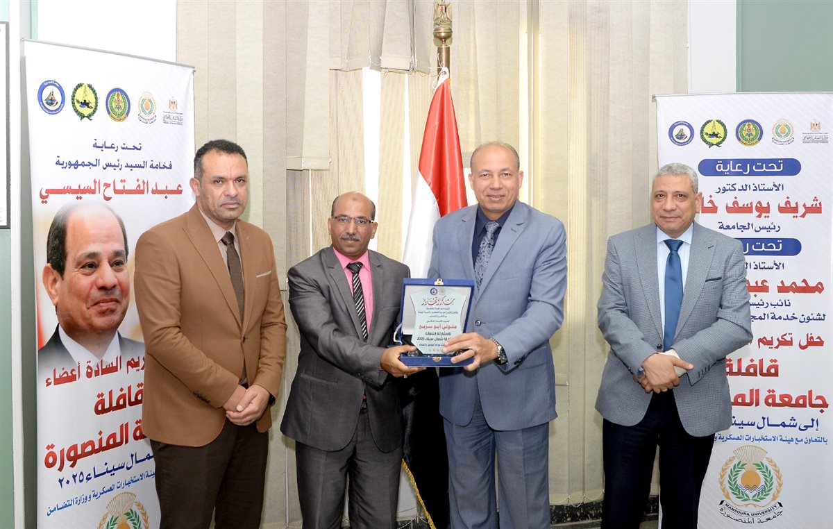رئيس جامعة المنصورة يكرم أعضاء قافلة "جسور الخير 22" تقديرًا لعطائهم في شمال سيناء