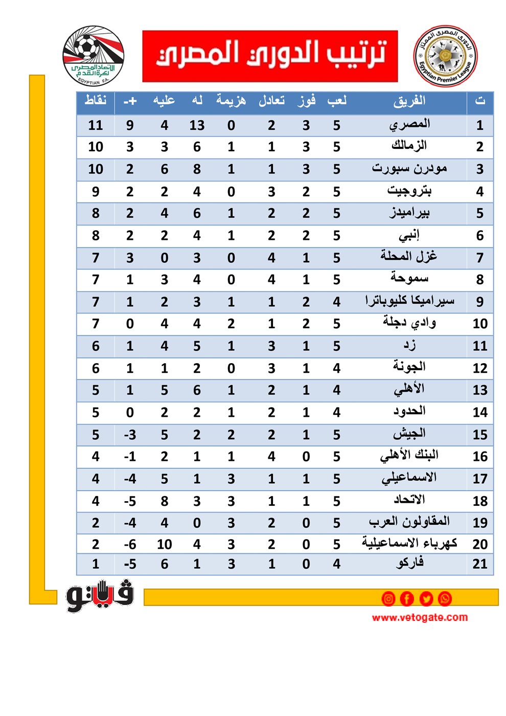 1- المصري 11 نقاط