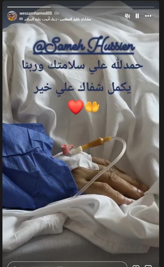 ونشرت “وسام” صورة لزوجها من داخل المستشفى عبر حسابها على "إنستجرام"، وعلّقت قائلة: "حمدًا لله على سلامتك، وربنا يتم شفاؤك على خير".