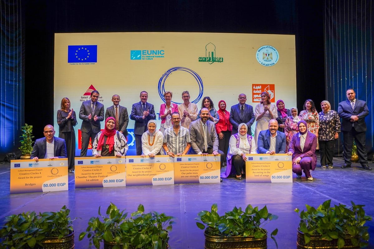 أُقيم حفل ختام النسخة الرابعة من مشروع دوائر الإبداع لتنمية وإعداد المديرين الثقافيين، وذلك بالمسرح الصغير بدار الأوبرا المصرية، والتى نفذت بمحافظتى أسيوط وسوهاج بالشراكة بين المجلس الأعلى للثقافة بأمانة الدكتور أشرف العزازي، واتحاد المعاهد الثقافية الأوروبية "يونيك" وبتمويل من الاتحاد الأوروبى، وذلك بحضور أنجلينا آيخهورست – سفيرة الاتحاد الأوروبي، والبروفيسير ميغيل غاراخالص مدير البرامج الثقافية بالمعهد الثقافي الإسباني ممثلا لليونيك.