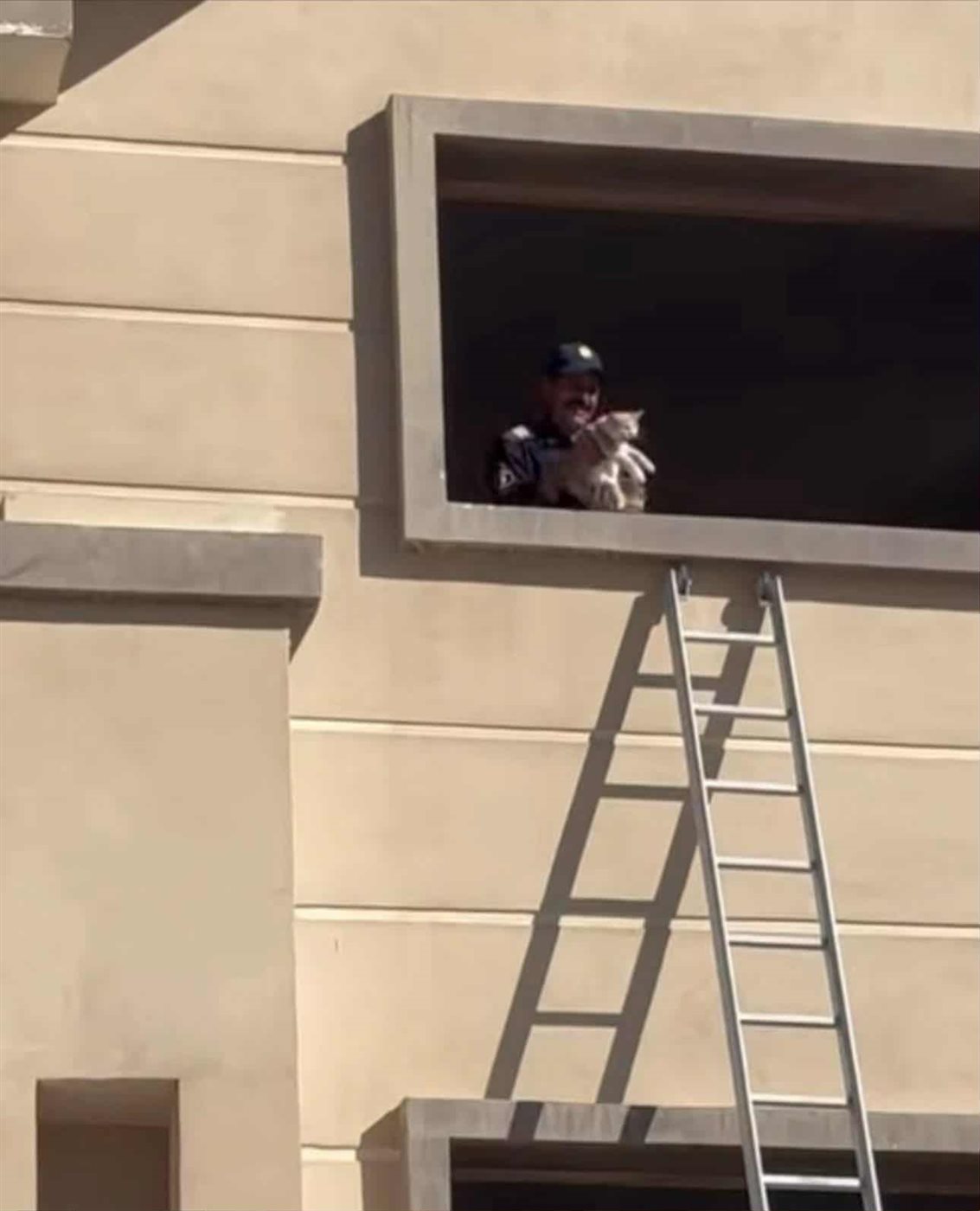 تداول رواد مواقع التواصل الاجتماعي صورًا ومقاطع فيديو تُظهر جهود رجال الحماية المدنية في إنقاذ قطة كانت عالقة بأحد المباني السكنية في الحي الخامس بمدينة المنيا الجديدة.