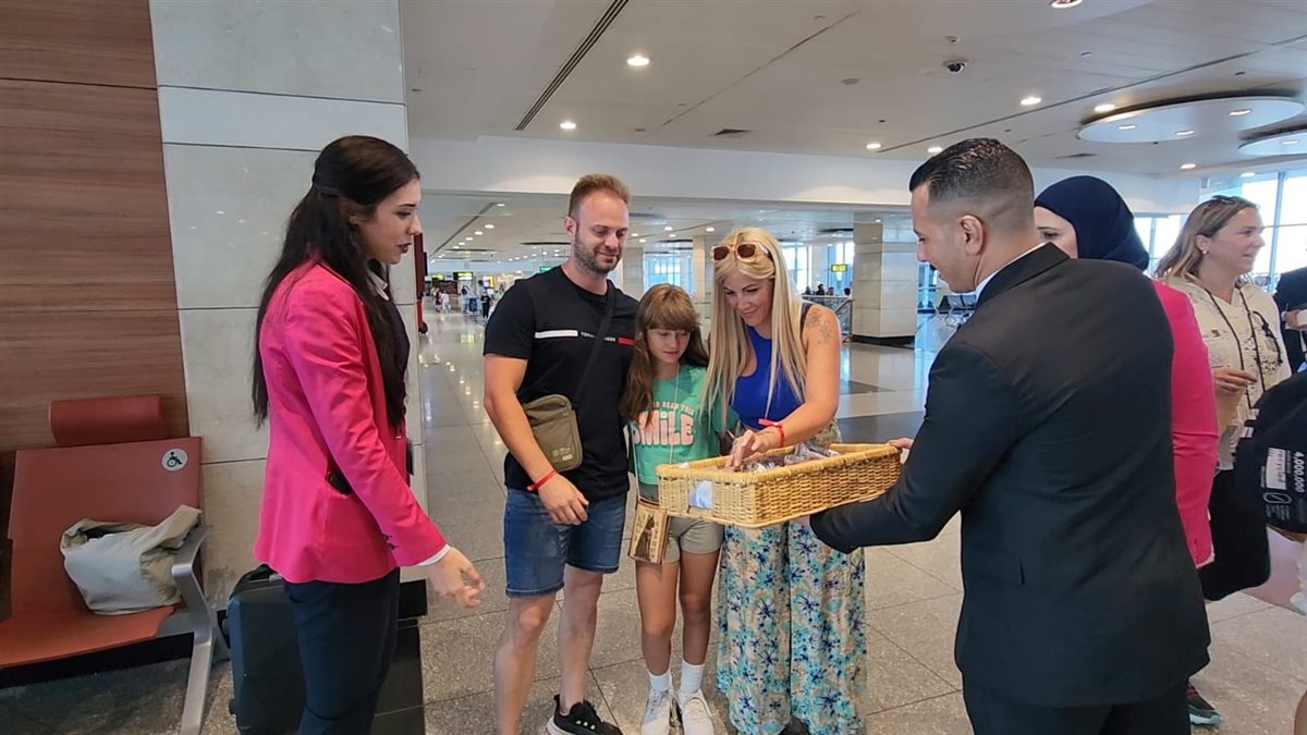 وقام فريق من العلاقات العامة على توزيع حلوي المولد النبوي الشريف علي السائحين بالمطار والمسافرين، وسط حالة من السعادة.
