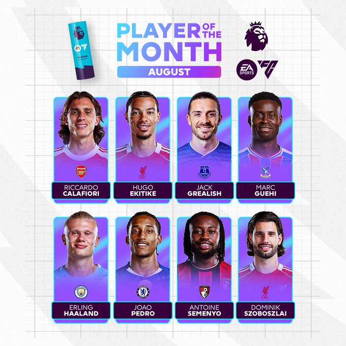 من المرشحين لجائزة أفضل لاعب، مارك جويهي لاعب كريستال بالاس، وجاك جيريليش لاعب ايفرتون، وهوجو إيكيتكي لاعب ليفربول، وريكاردو كالفيوري لاعب ارسنال، ودومينيك سوبوسلاي لاعب ليفربول، وسيمينيو لاعب بورنموث، ويبدرو لاعب تشيلسي، وإيرلنج هالاند لاعب مانشستر سيتي.